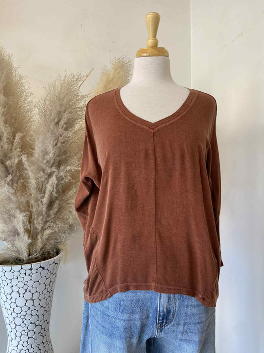 Leni V-Neck Dolman Top ~ Coffee Bean