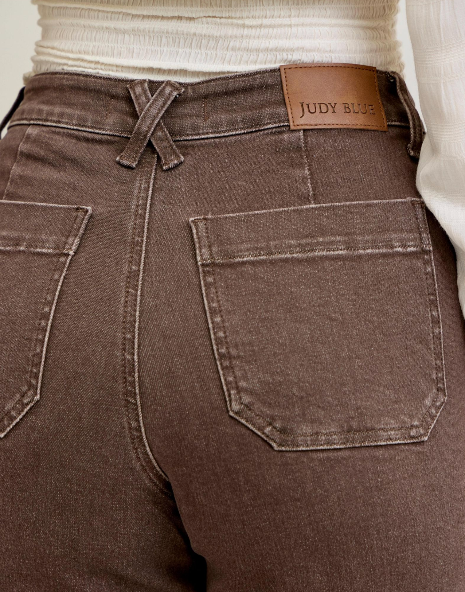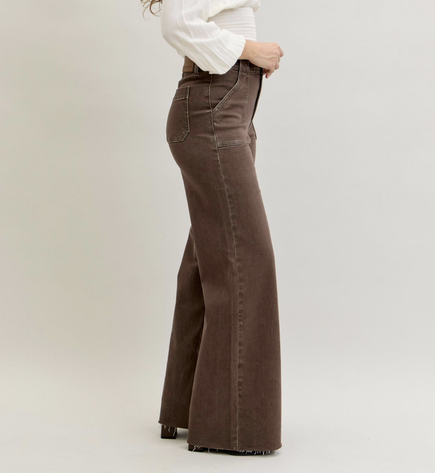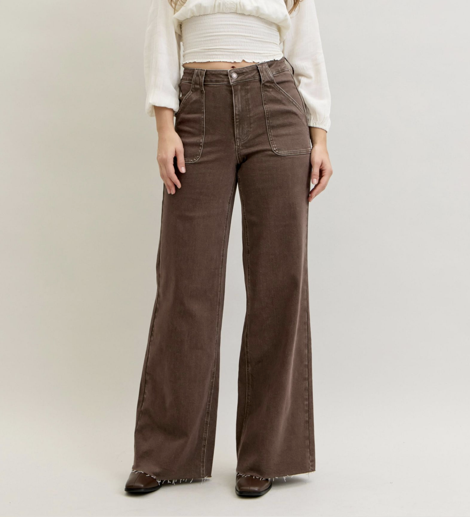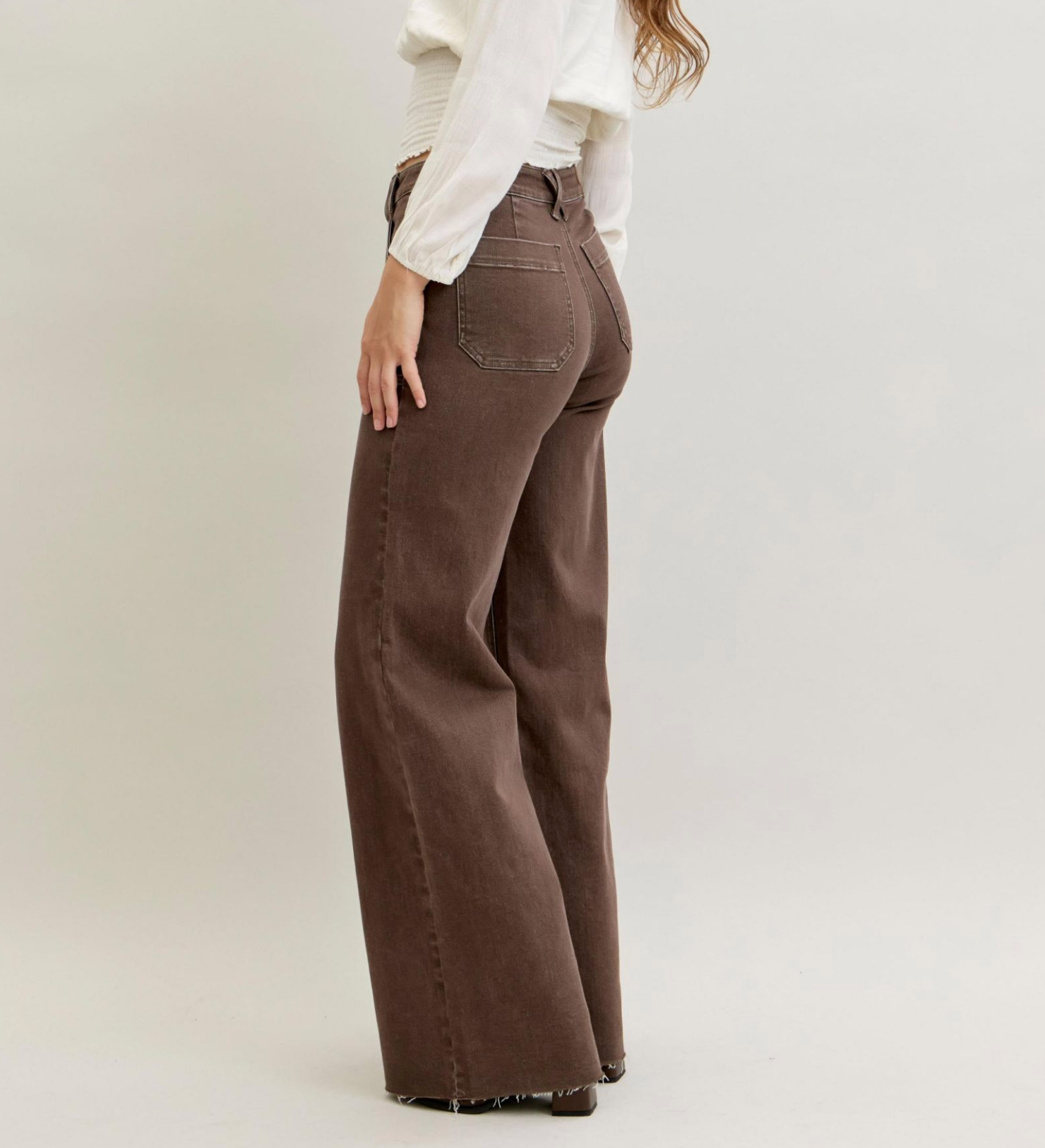 A beautiful retro wide leg jean in a beautiful brown tone. Easily pass as a work pant!!