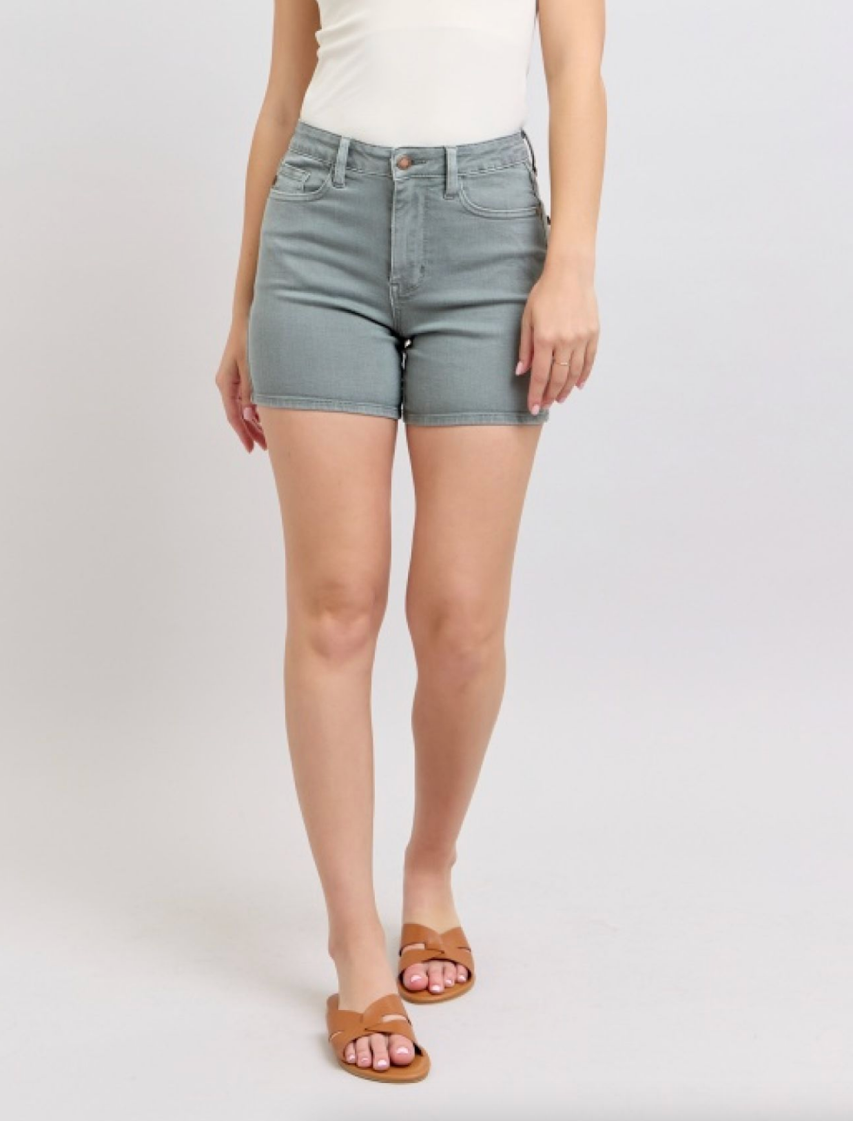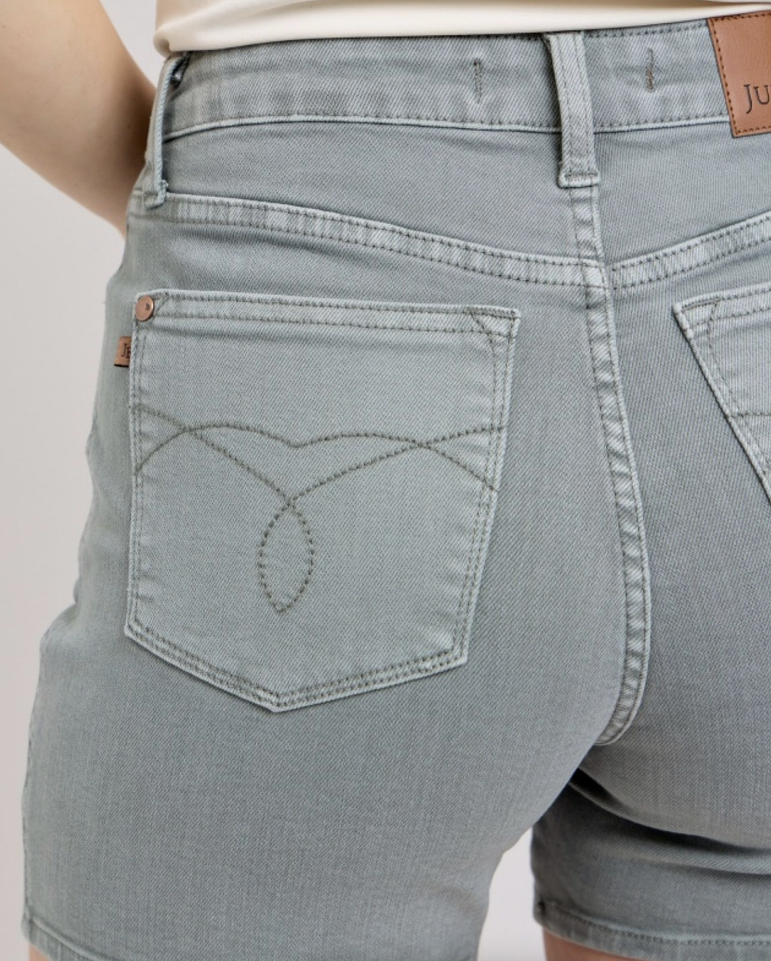 High Waist Garment Dyed & Back Pocket Embroidery Shorts