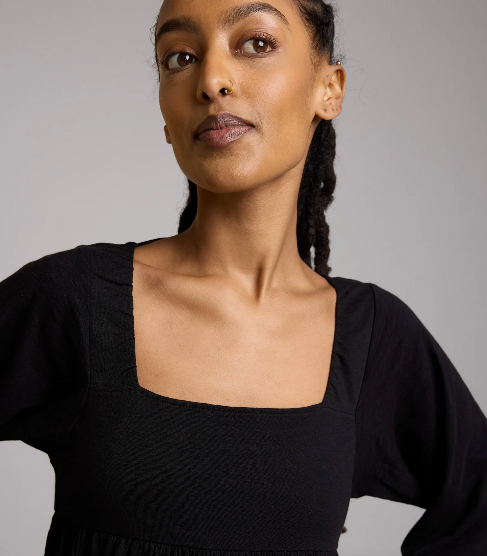 Long sleeves, fun, and flowy. Those are the 3 words we would use to describe the Ambrose Dress. The square neckline and the elastic at the cuffs are the details that help provide the perfect fit.