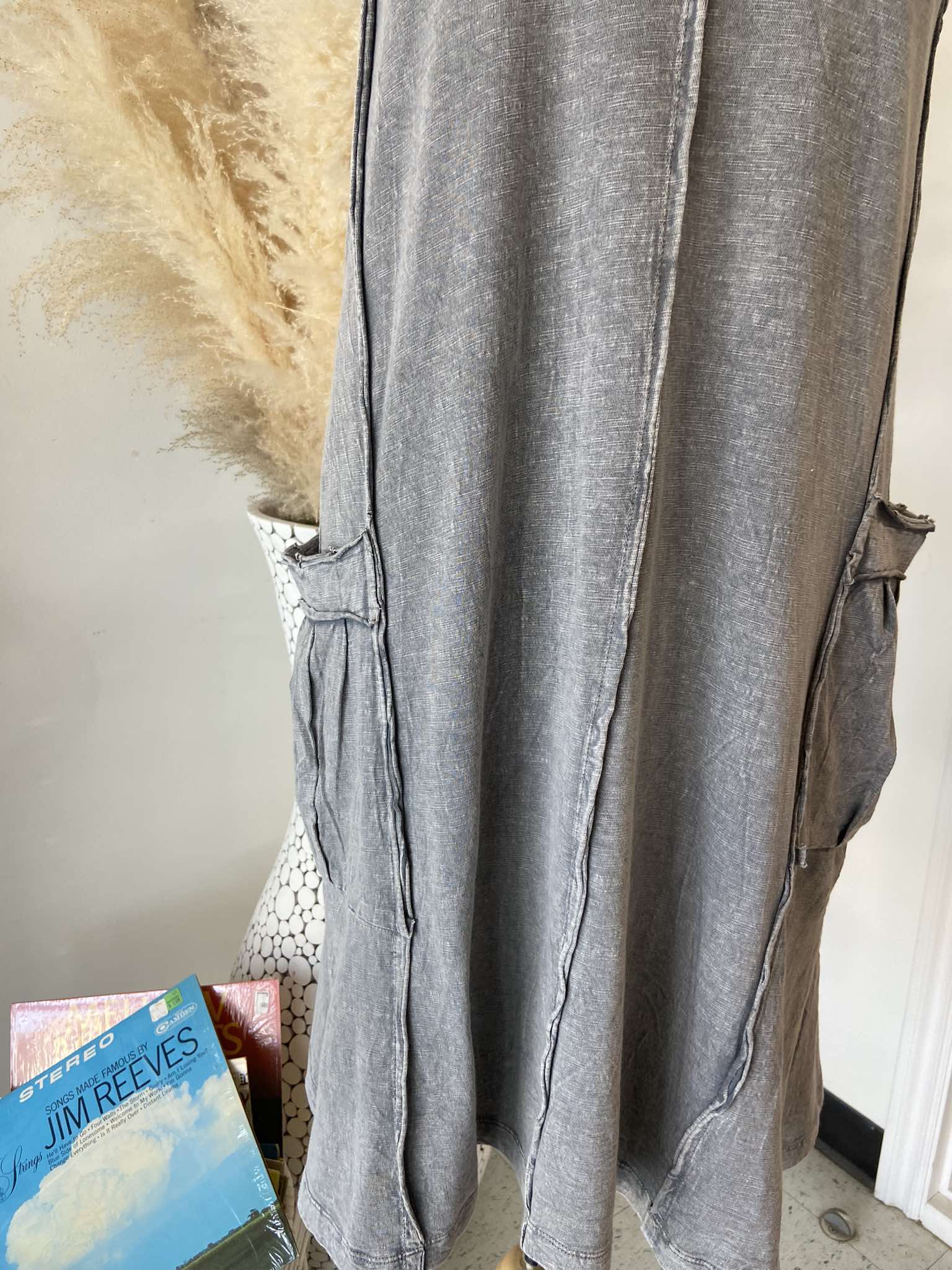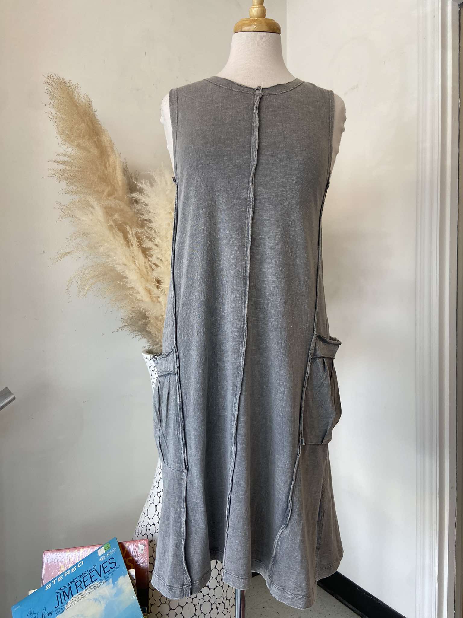 The Brett tunic dress can be worn as just that, a tunic or a dress...or as a pinafore over a long sleeve and tights or leggings. It has a loose, relaxed silhouette perfect to wear with a wedge shoe, sandals, sneakers or a combat boot!