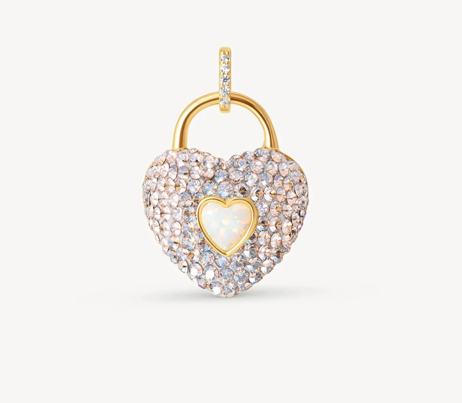 The Champagne Sparkle Heart Charm blends elegance and sentiment in one radiant piece. Featuring our custom Champagne Sparkle crystals and a luminous lab opal center, this heart-shaped charm offers a reversible design: one side shines with sparkle, the other features our sleek H&B monogram. Crafted in 14k gold vermeil over sterling silver, it’s compatible with all H&B You chains and charm holders—so you can wear it your way. Whether you’re gifting love or keeping it close, this charm holds meaning with every shimmer.