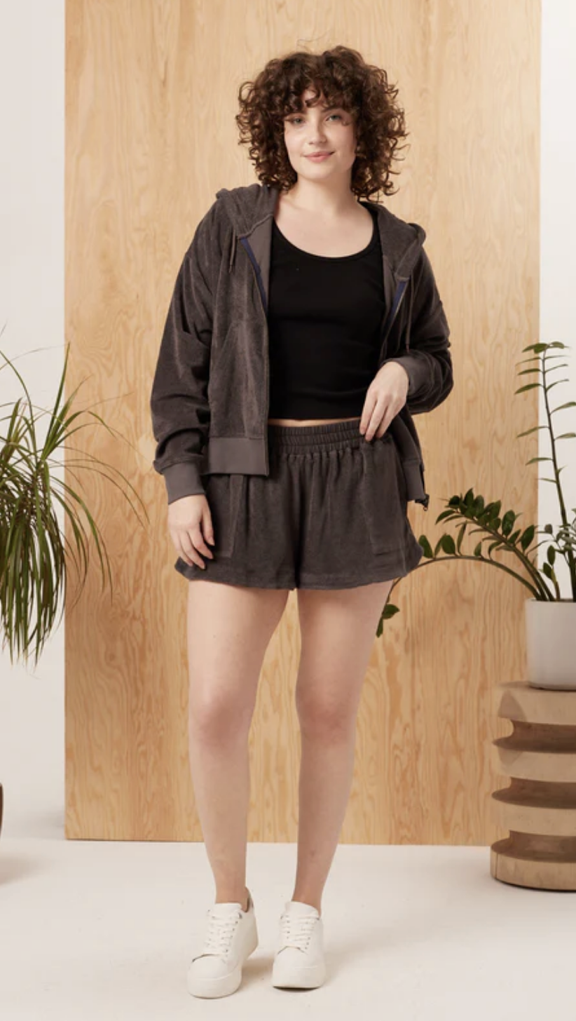A soft, organic french terry towel... made into a hoodie. You won't want to take this off. Pair it with the Tansy Jogger for the absolute HIGHEST levels of comfort.