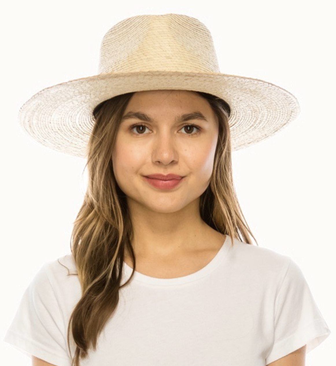 Structured 100% Palm leaf rancher hat, made in Mexico. UPF 50+, Elastic stretch sweatband (fits crown sizes 57-59 CM). 3.5" brim, unisex - for women and men.