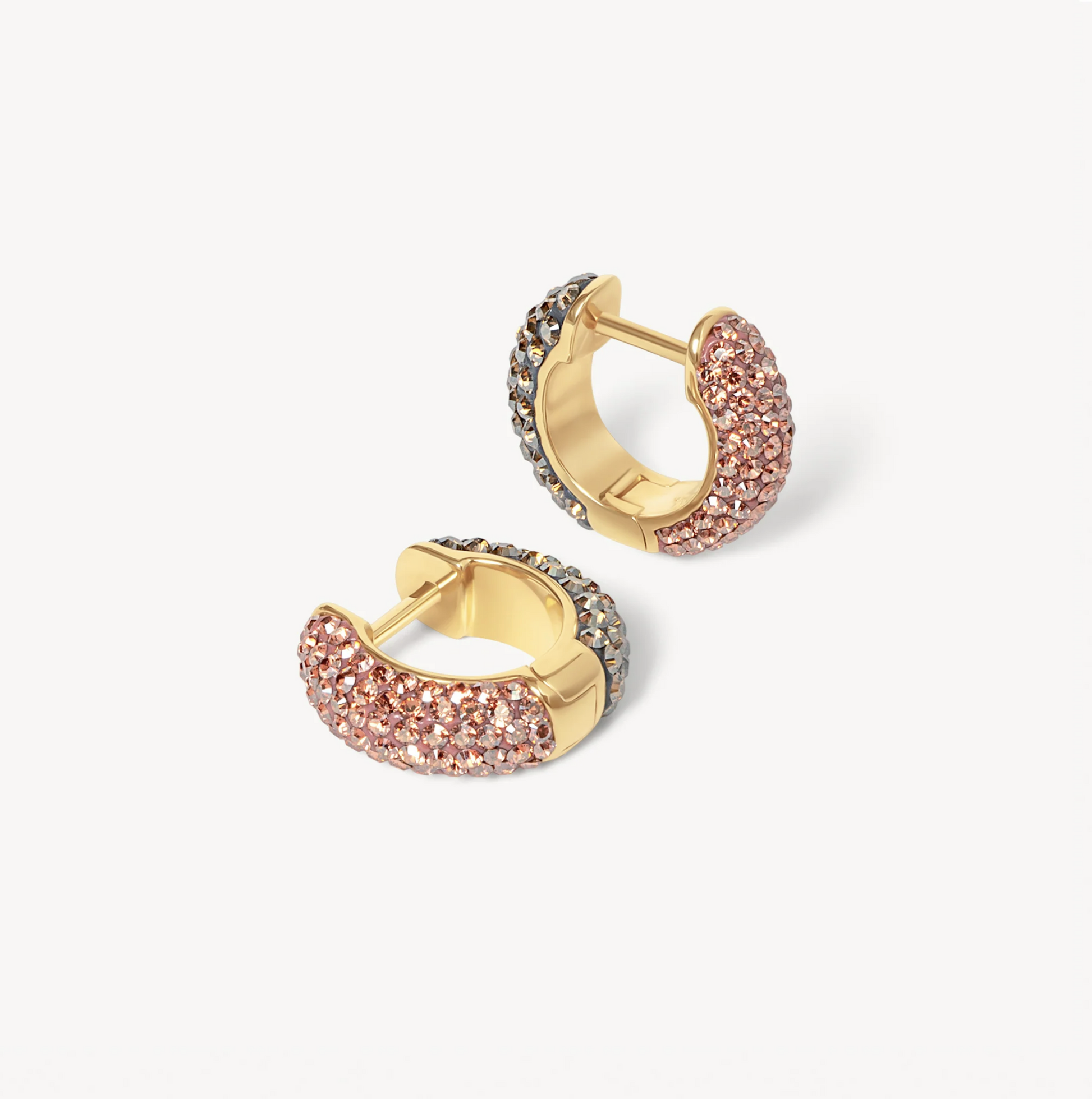 A subtle statement with a story on both sides. These reversible 16mm hoops feature two proprietary Hillberg & Berk crystal finishes: warm Desert Rose on one side and soft Sand Dunes on the other. Made to reflect the shifting hues of desert light, this sculptural style adds versatility and polish to any look. Whether you want a hint of blush or a grounded neutral tone, these hoops let you switch your Sparkle with a simple flip.