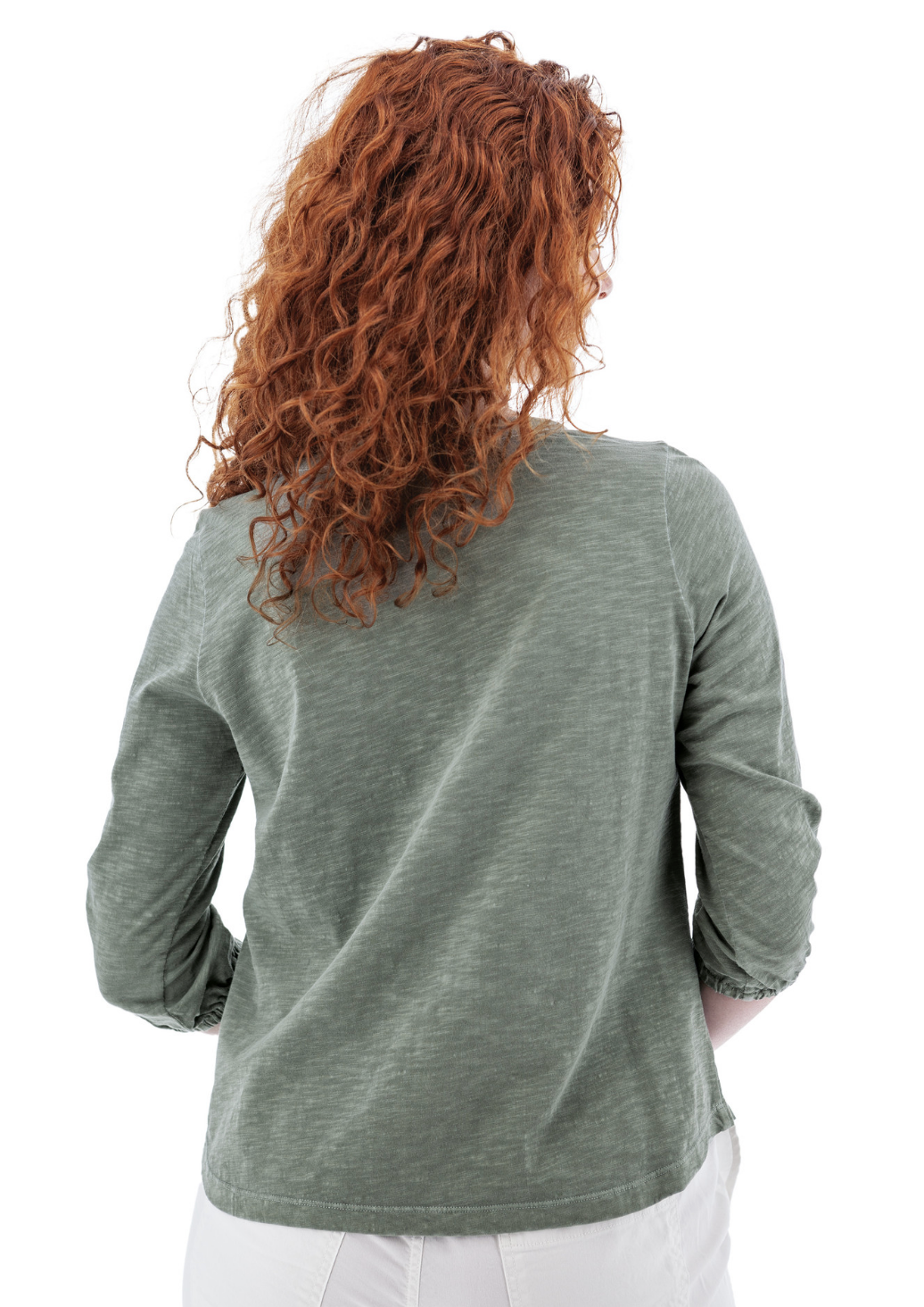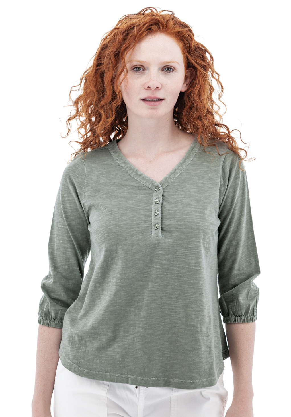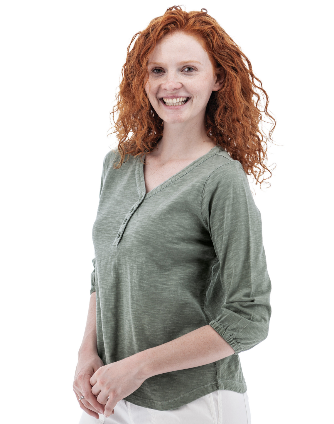 The Este Organic Cotton V-Neck Henley is dependable but designed to feel more special than the average tee. One way this stands above the rest is the sustainable slub knit fabric, crafted from organic cotton. It has an incredible and unique texture throughout, one that also gifts a naturally heathered appearance. This fabric breathes well, sits comfortably against the skin, and is easy to care for. We love the modern length, ending (on average) at the hip. It's the perfect length to pair with mid-rise jeans and still look flattering when not tucked in. The slight shirttail hem adds to the flattering shape and the V-neck henley gives it that flattering flare.