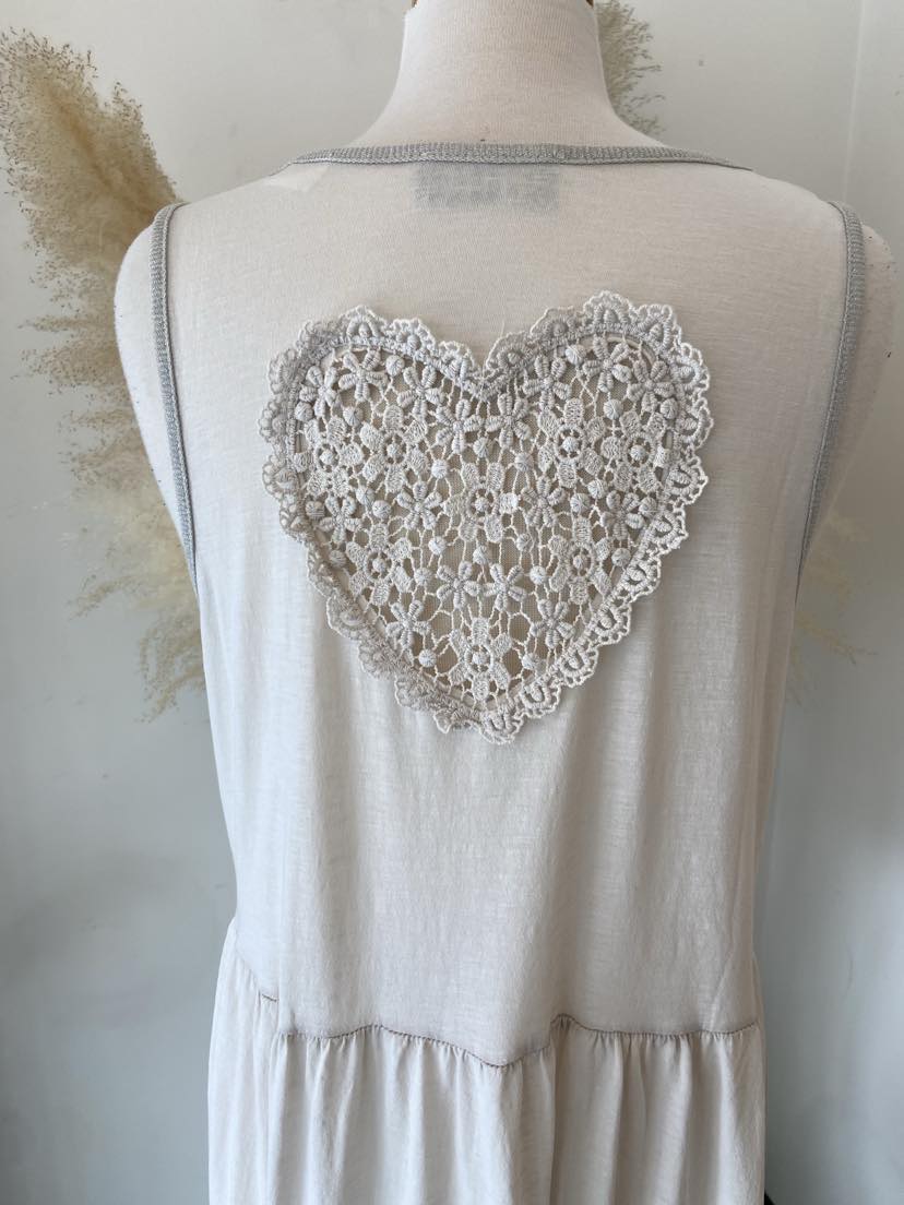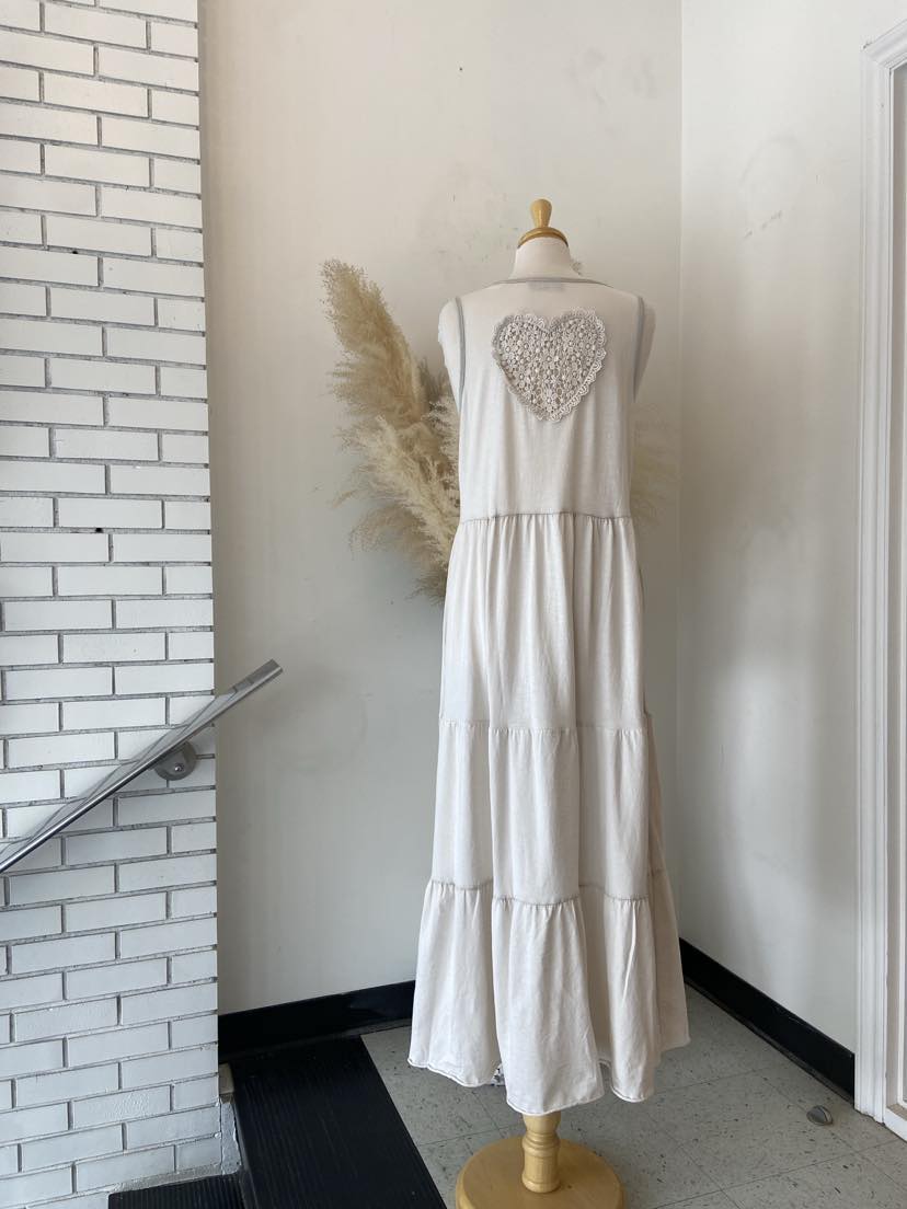 A true Maxi. Long and flowy fabric with beautiful heart detail on the back!