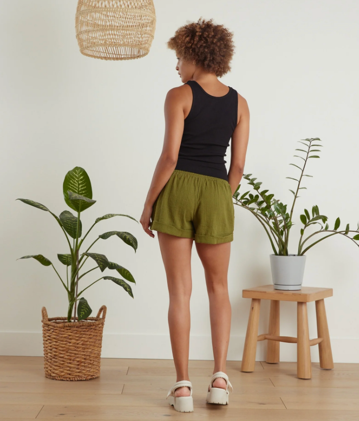 The organic cotton gauze fabric that makes up the Geo Short is the lightweight and breezy material that is made for warmer weather. Try it on to see for yourself.