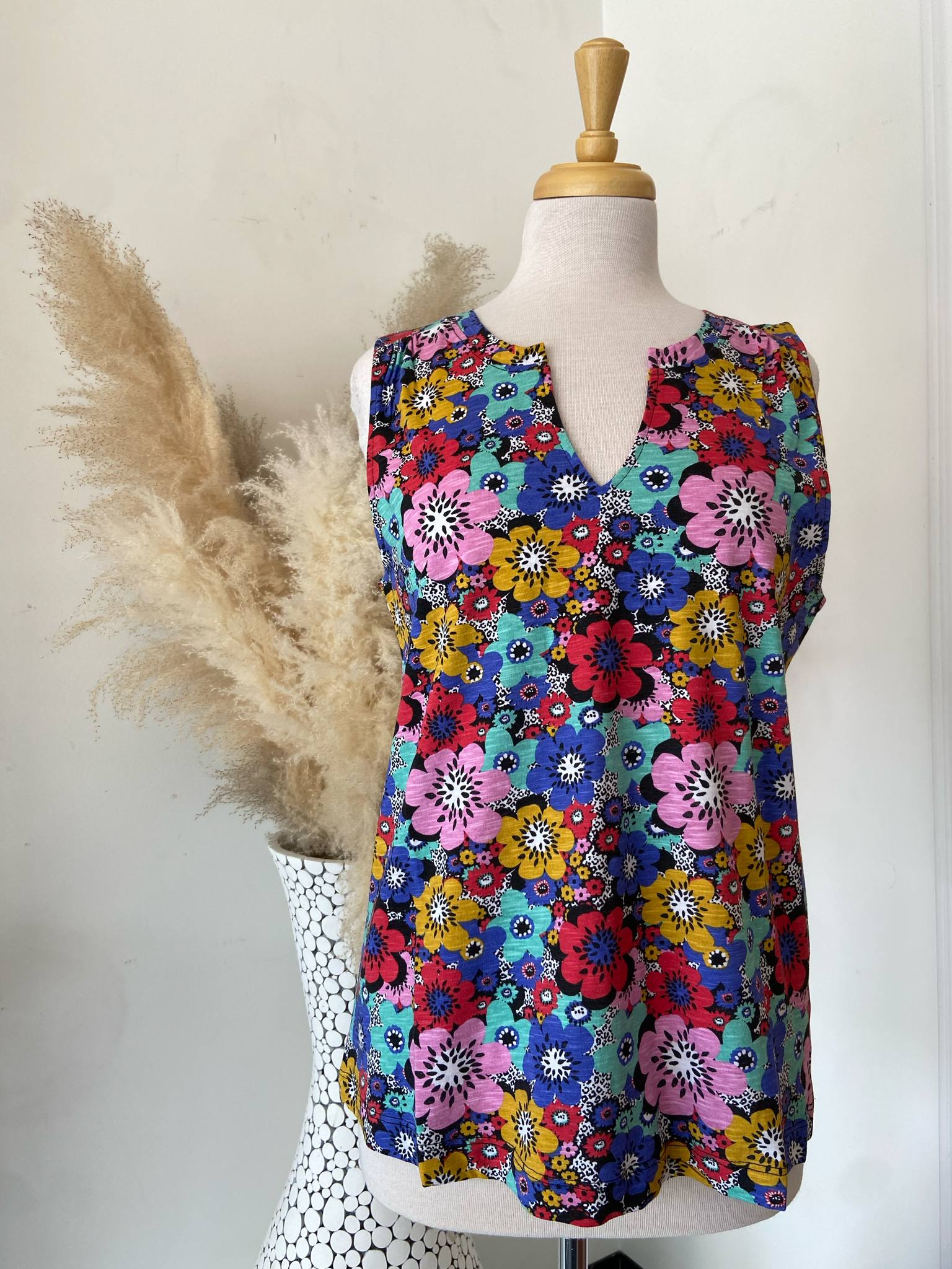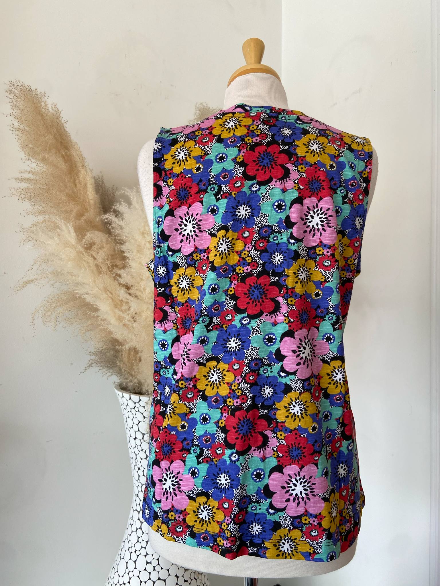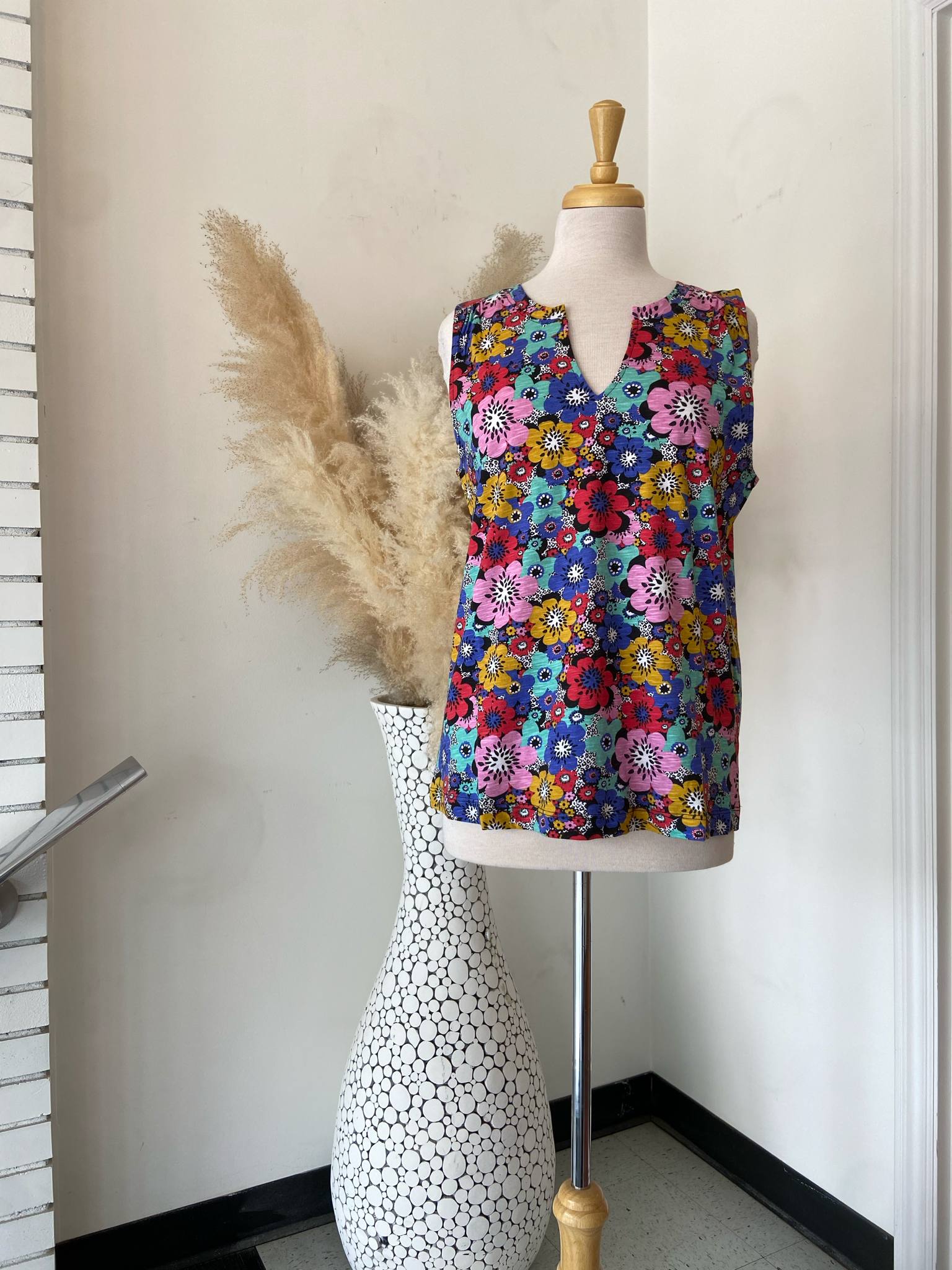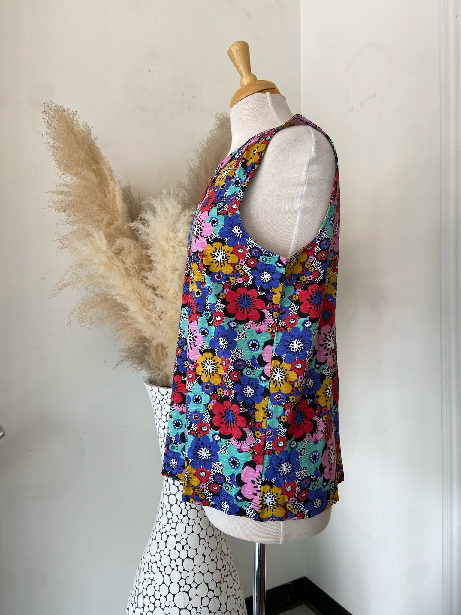 This top features a round neckline with a V cutout, creating a modern and chic look. Made from a textured cotton knit, this tank offers a comfortable and loose fit, making it a great investment for your wardrobe.