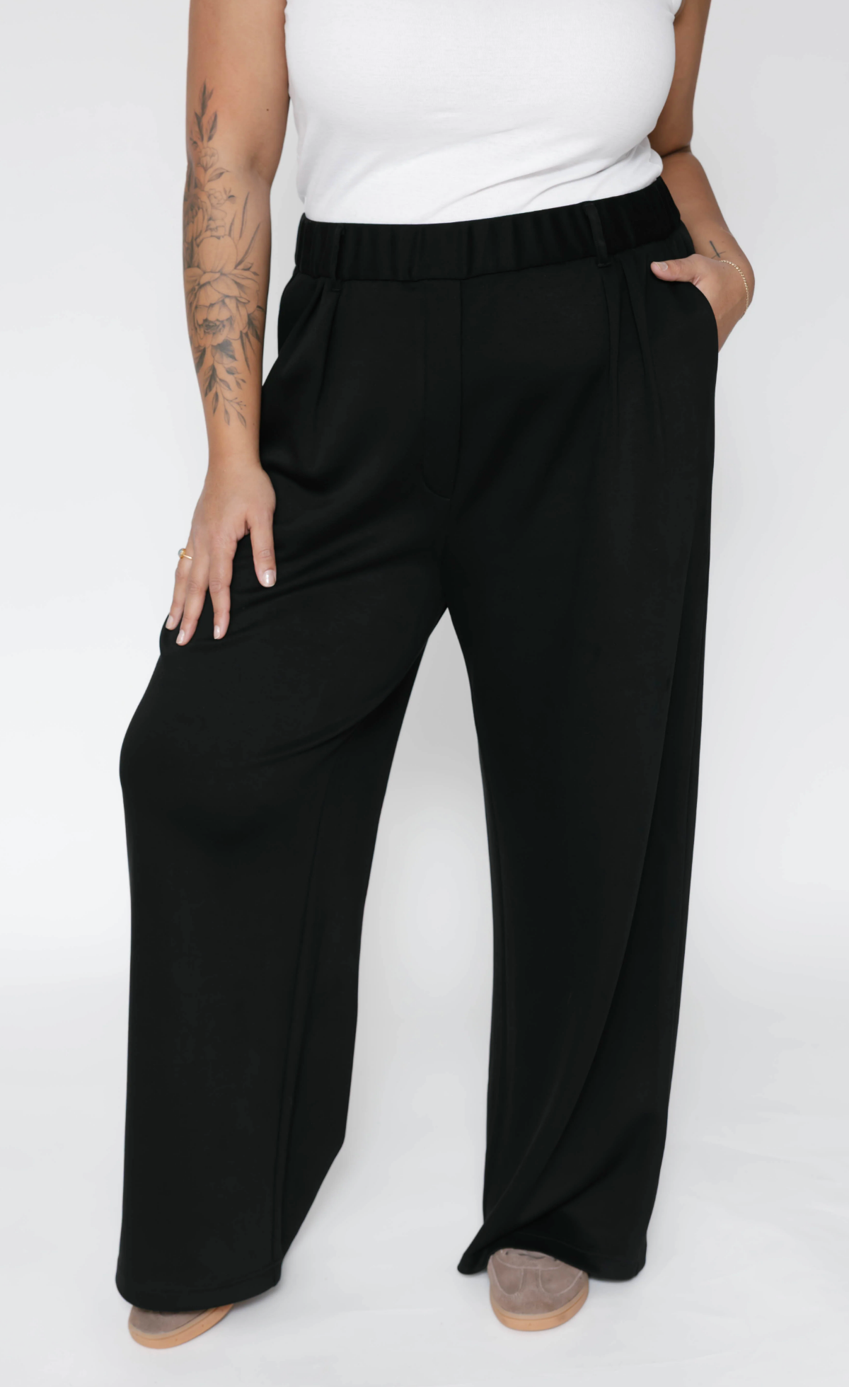 Feel unstoppable in the best trousers we’ve ever created! Made in a soft and luxurious microscuba fabric, the Halle Pants have all the elements you love in our trousers, with added features! You know we don’t believe in hard pants, so you better believe this elasticated waistband with hidden adjustable drawstring allows you to customize your fit any time you wear them! Featuring a high-waisted fit, slim leg, belt loops, and side pockets, no details were missed in these timeless trousers that will take you from day to night and everything in between!