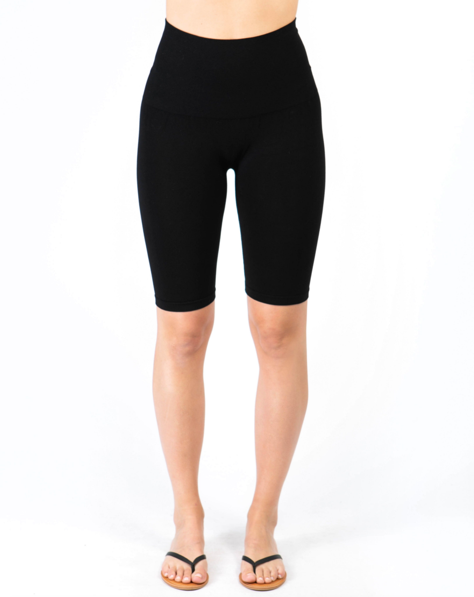 Soft biker tight with a wide tummy tuck waistband with a power knit - creating a smoother appearance and comfier fit.