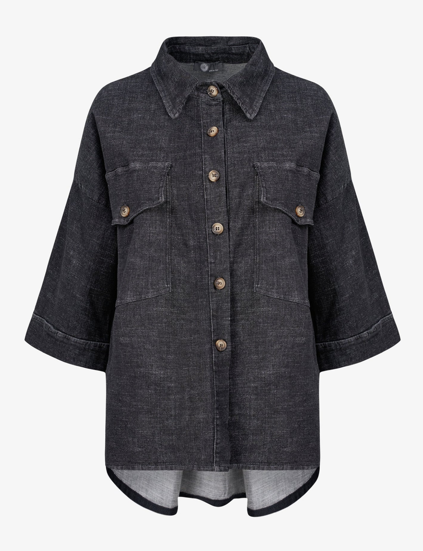 Sasha wore Medium open as a jacket and Large buttoned up as a shirt.