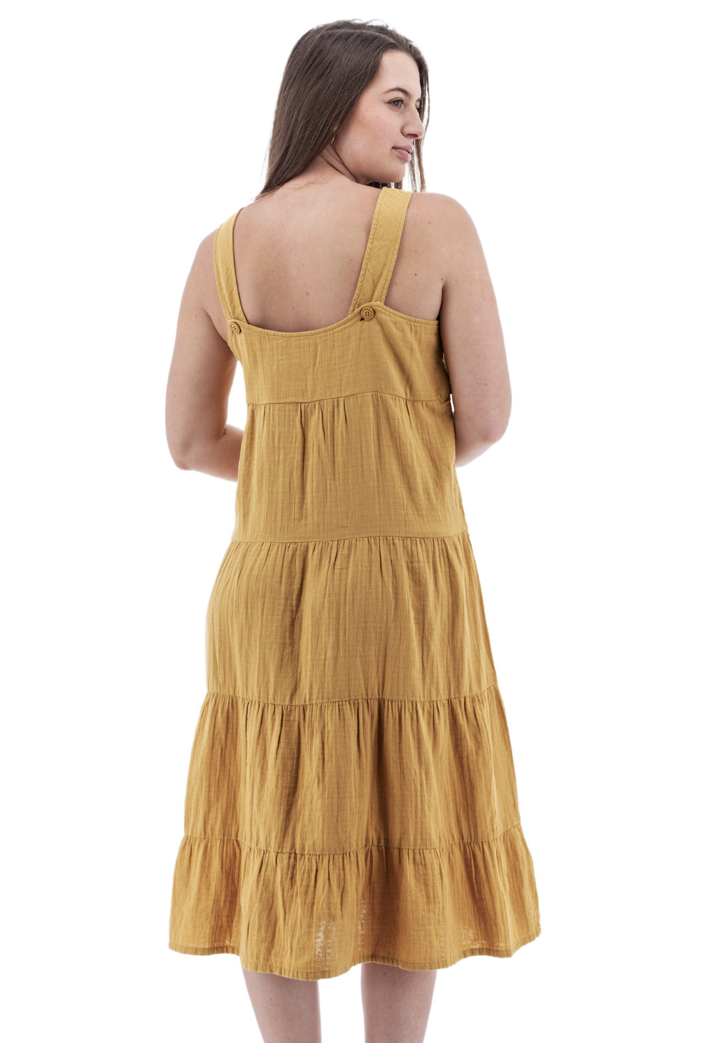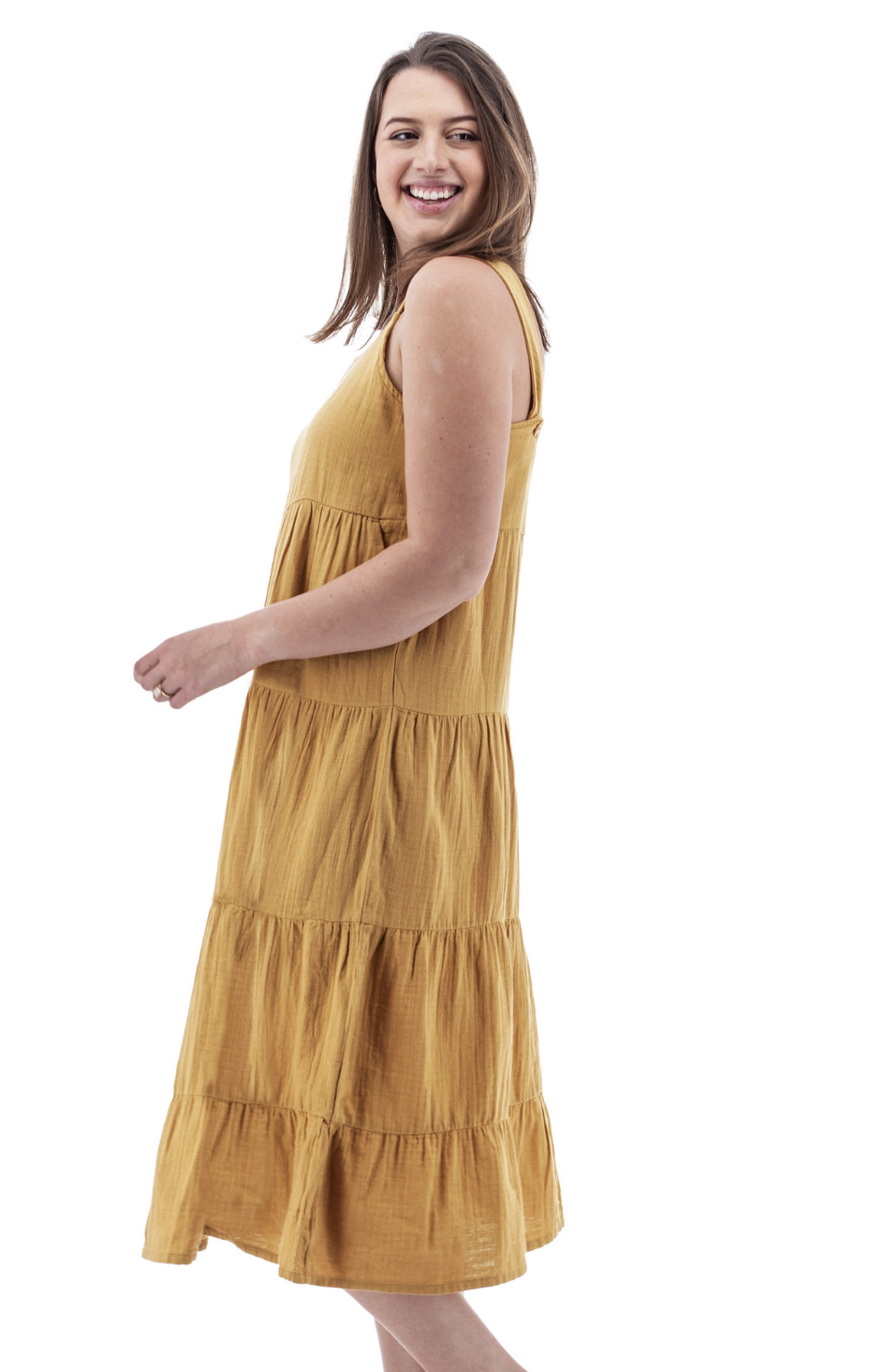 The style that launched a thousand compliments: introducing the Kelford Tiered Midi Dress. The effortless aesthetic of this breezy dress stands out in a crowd - easy-going yet sophisticated. But what feels even better than the inevitable adoration is the organic cotton gauze fabric. This loosely woven fabric is airy, soft, and slightly textured. It breathes and moves like a dream, making you feel wonderfully light all day. Thoughtful design details flatter, including the square neckline, gentle scooped opening at the back, and adjustable, bra-friendly straps. What can make this even better? Pockets, of course! This is style without the fuss - just slip it on and go, looking polished and totally you.