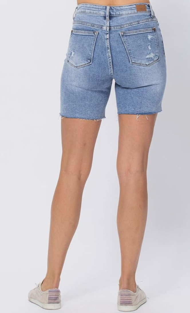 Do you love a distressed short but don't love holes?! These ones are patched with a raw hem. Great addition to your summer looks!