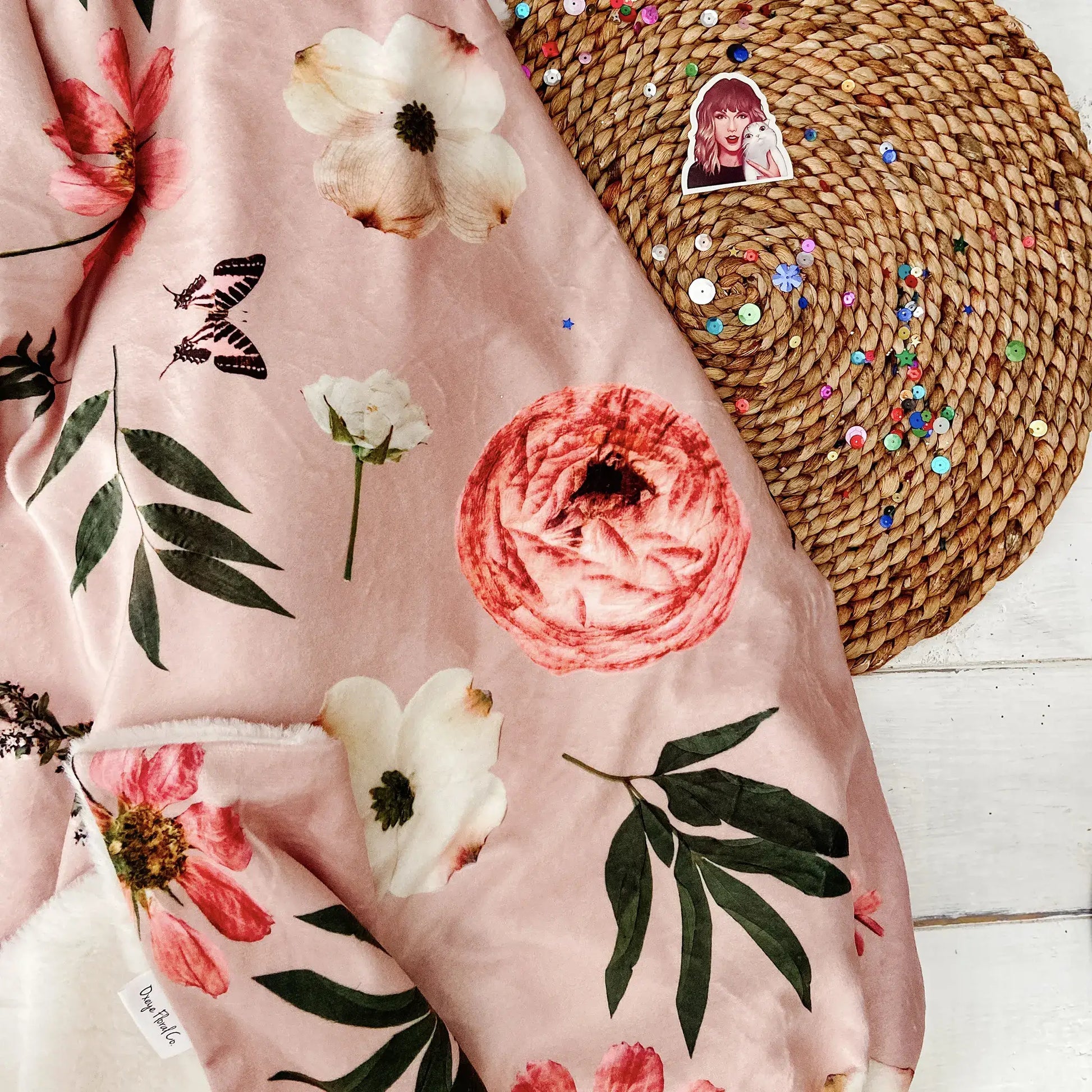 Snuggle up in fairy-tale comfort with the Love Story Throw Blanket! This super soft, light pink throw is adorned with delicate florals and whimsical butterflies, creating an elegant and cozy addition to your space. Cozy and comfy, it's just right for movie nights, story time, or afternoon naps. Live like a princess and embrace your cozy fairytale with every touch. Or a cozy gift for someone special!