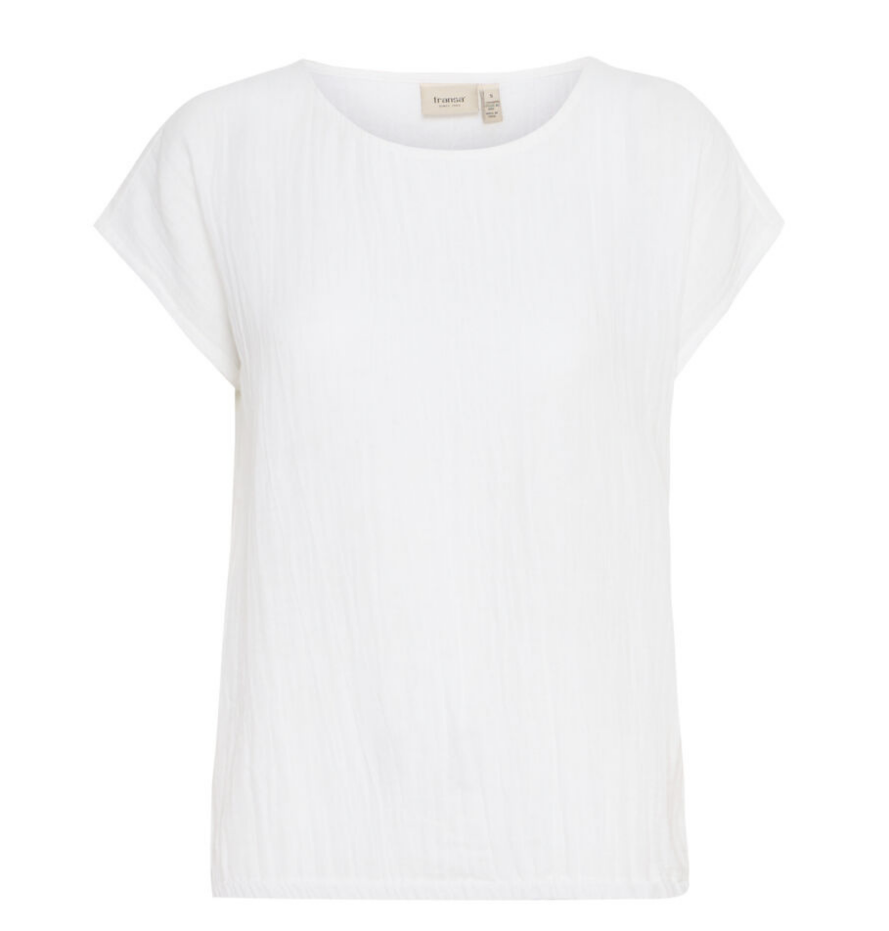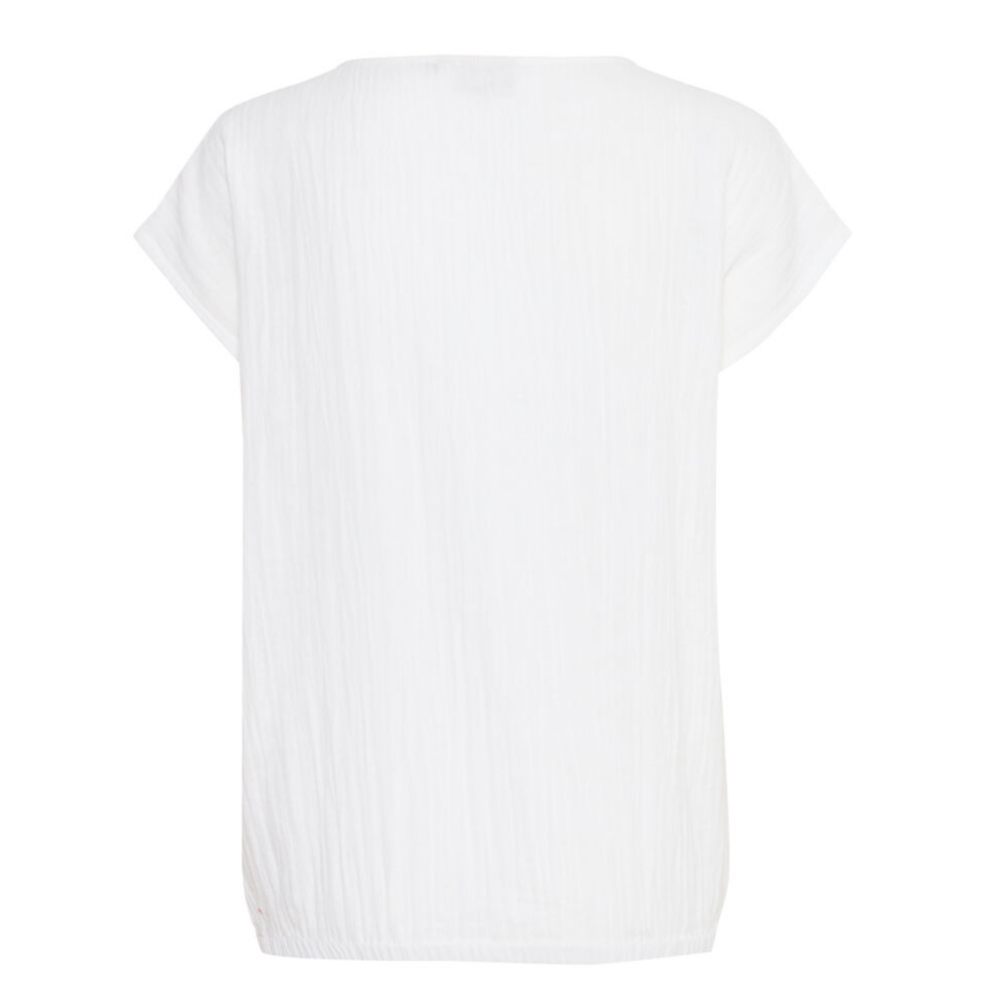 Lightweight cotton short sleeve blouse with a rounded neck and elasticated hem.