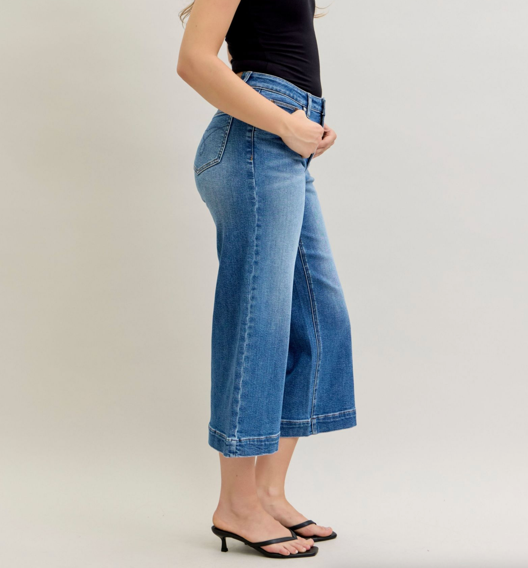 These blue wash Judy Blue Crop jeans are perfect with your combat boots for winter....OR for our lovely height challenged ladies they will be the perfect full length wide leg jeans!!! Super cute with the wide hem!
