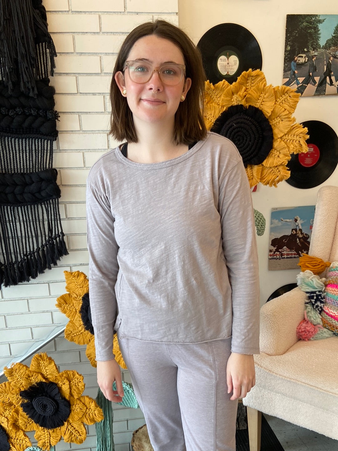 3/4 sleeve hi-lo crew tee.