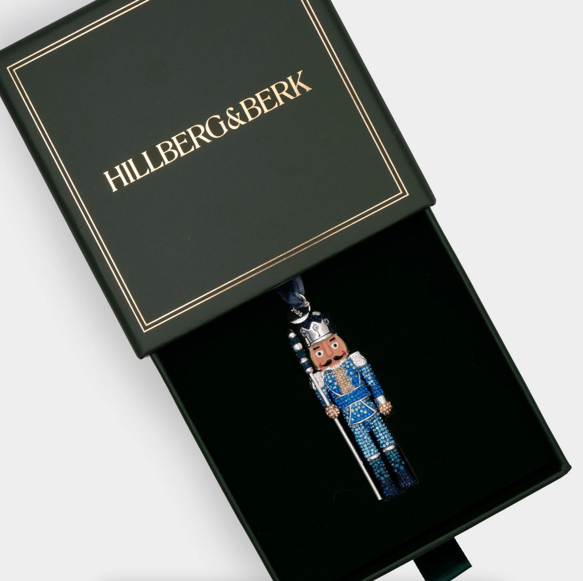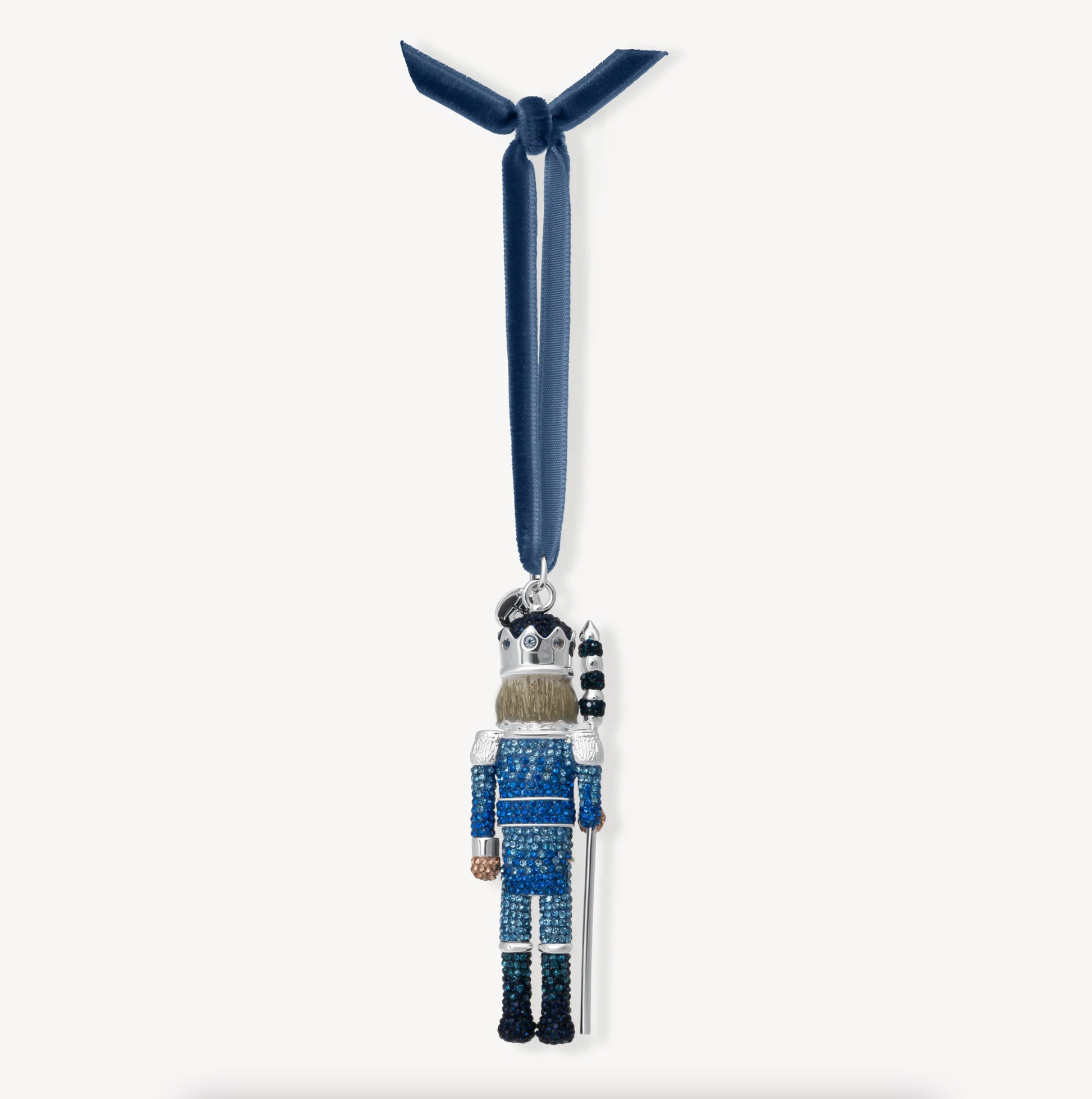 A fan favourite returns in a bold new look. Our Nutcracker Ornament brings the holiday spirit to life with a vibrant blue uniform, detailed in hand-set crystals that catch the light from every angle. Crafted with silver-plated brass for added strength, this collectible balances nostalgia and sparkle in true Hillberg & Berk fashion. Finished with a soft velvet ribbon and packaged in a custom gift box, it’s a joyful keepsake designed to shine year after year.