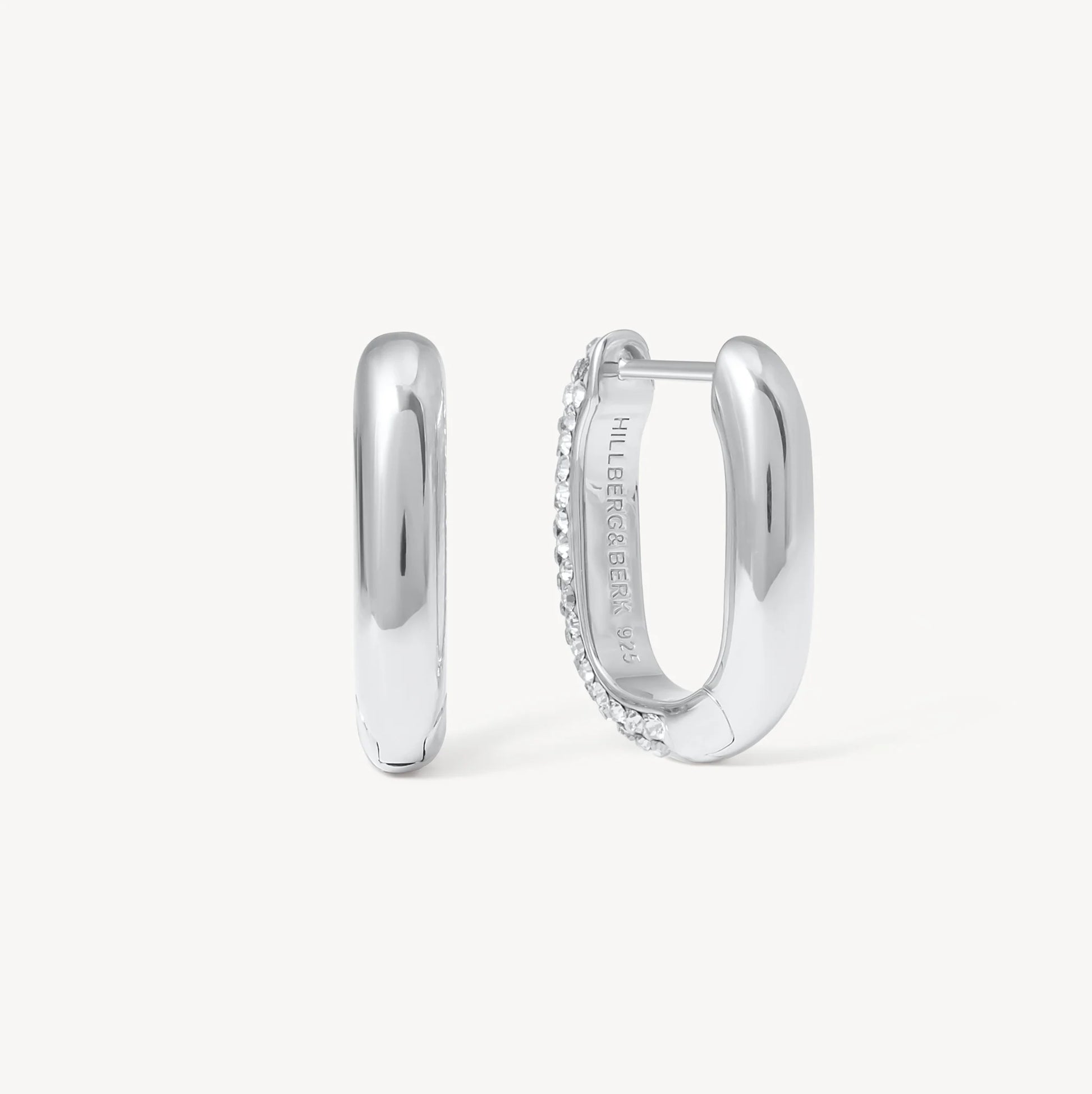 Designed to stand out without trying too hard, the Reversible Sparkle Link Hoops bring bold dimension to an elongated, lightweight silhouette. One side features polished metal, the other our signature hand-set crystal detailing—letting you flip your look depending on your mood. Crafted with a secure hinge-and-click closure, these hoops are easy to wear all day while still making an impact. Available in sterling silver or 14k gold or rose gold vermeil, they’re a modern essential that balances versatility with unmistakable shine.