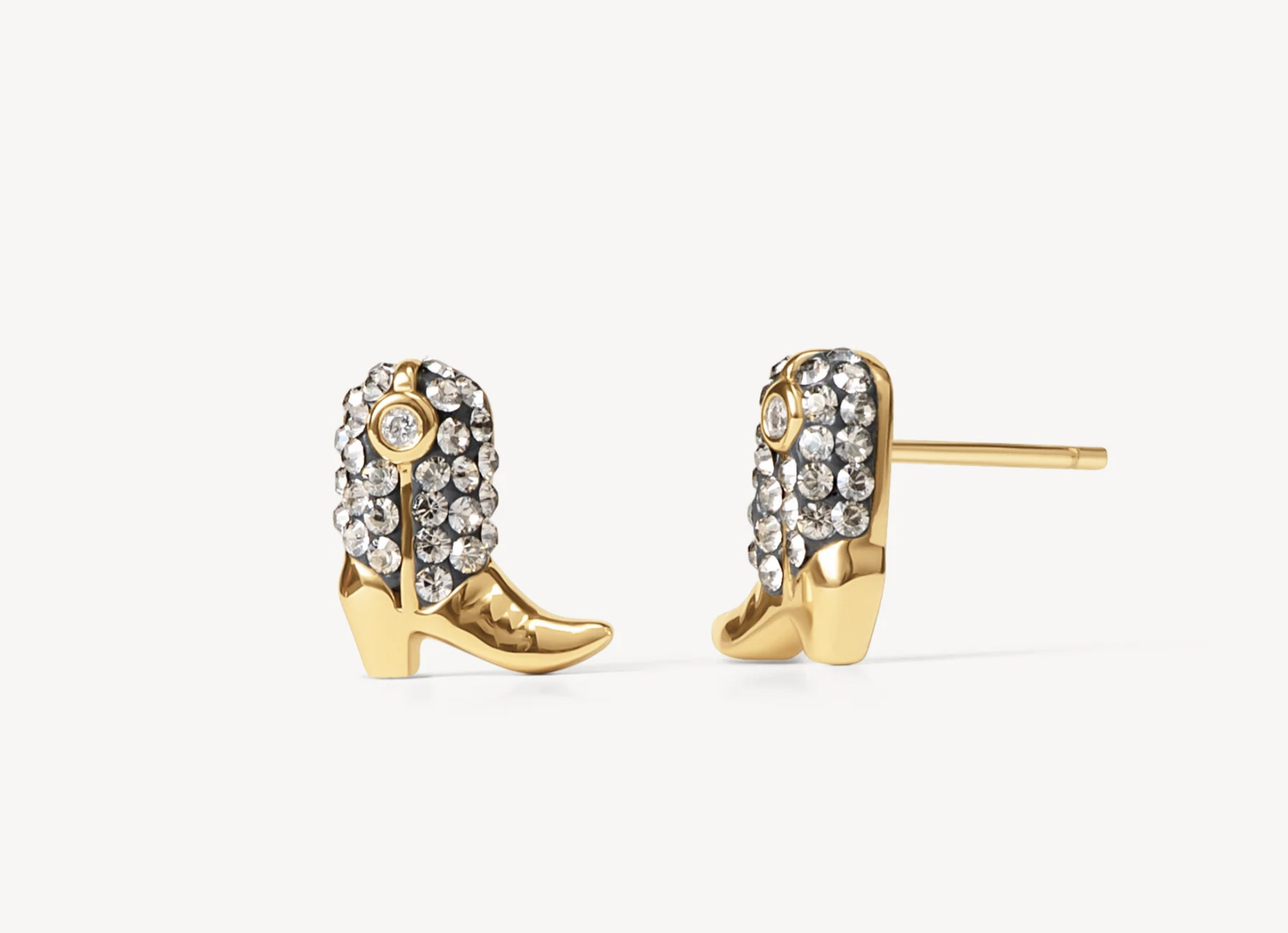 These aren’t just earrings—they’re a little yeehaw for your ear stack. The Ride Boot Sparkle Studs bring Western flair with a polished twist, featuring a boot-shaped silhouette and silver shade crystals set in 14k gold-plated sterling silver. Small but detailed, they deliver playful personality while staying wearable for everyday. Whether you're pairing them with denim, dresses, or a bit of both, these studs make every outfit a little more fun to wear.