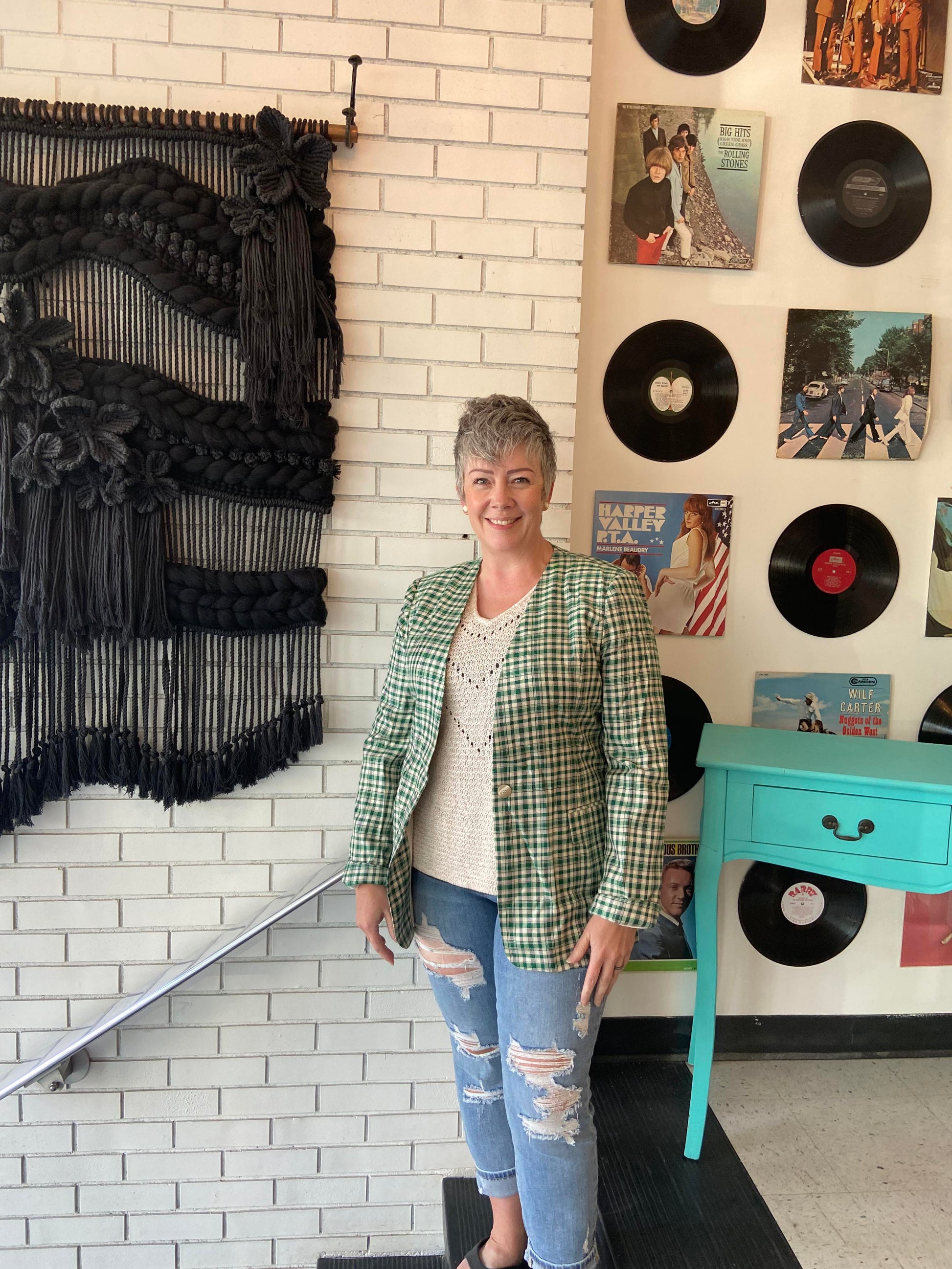 Collarless blazer to dress up an outfit. Cute with a tshirt and jeans.