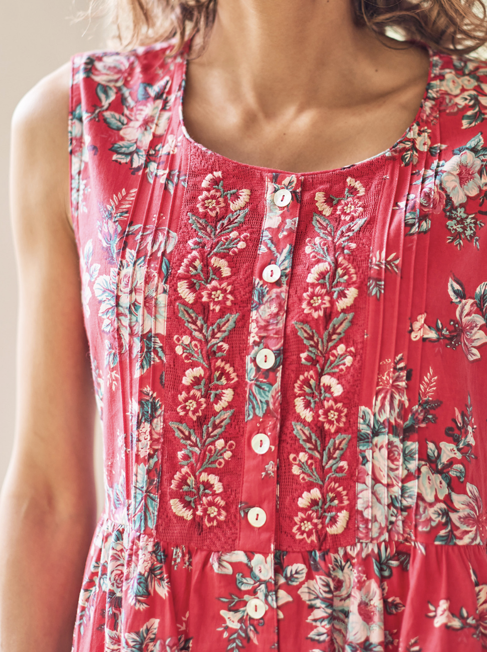 Layers of marvelous detail become a thing of singular beauty in the Rosemary, a striking cotton design showcasing hand-guided embroidery, lace trims, pintuck pleats, and button-on ties for the perfect fit.