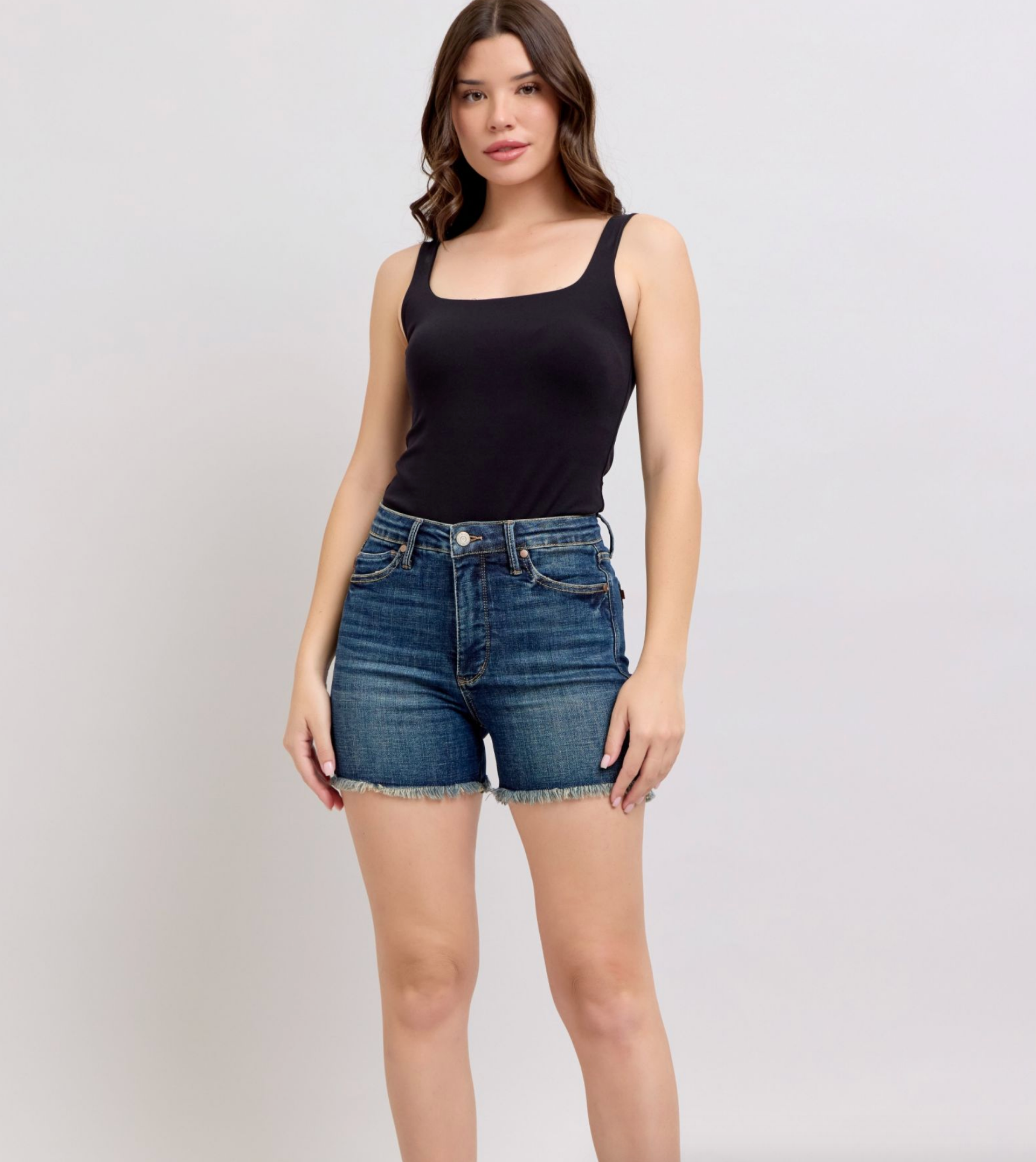 HW Tummy Control Fray Hem & Shield Back Pkts Shorts