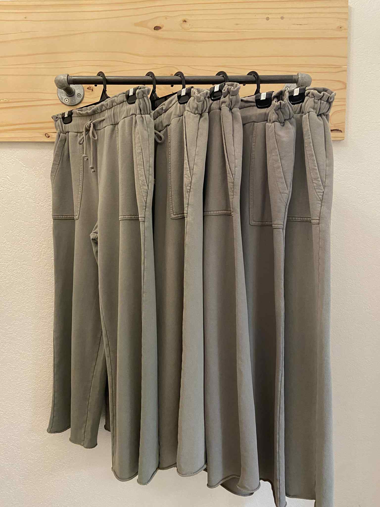 A wide leg ankle pant with a paper bag waist and raw hem. Perfect with sneakers or Berks!