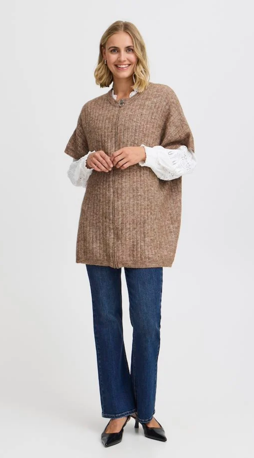 Short sleeve zip up cardi. Boxy fit with great layering options, over a long sleeve, a dress or your favourite blouse!! Very generous fit!