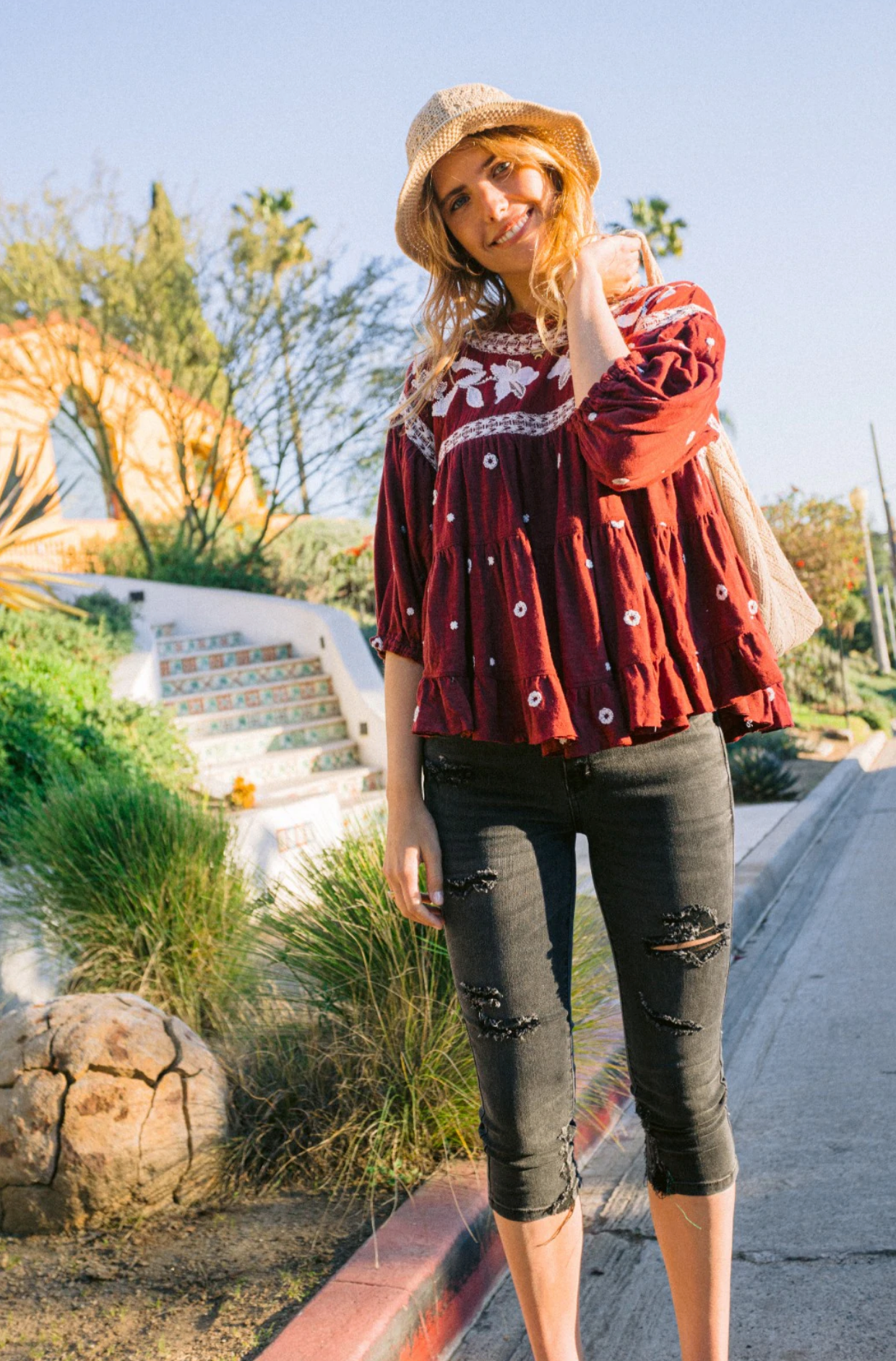 Our essential capri length jeans are a must have for warm and sunny days. This pair has functional pockets, great stretch, and a comfortable fit.