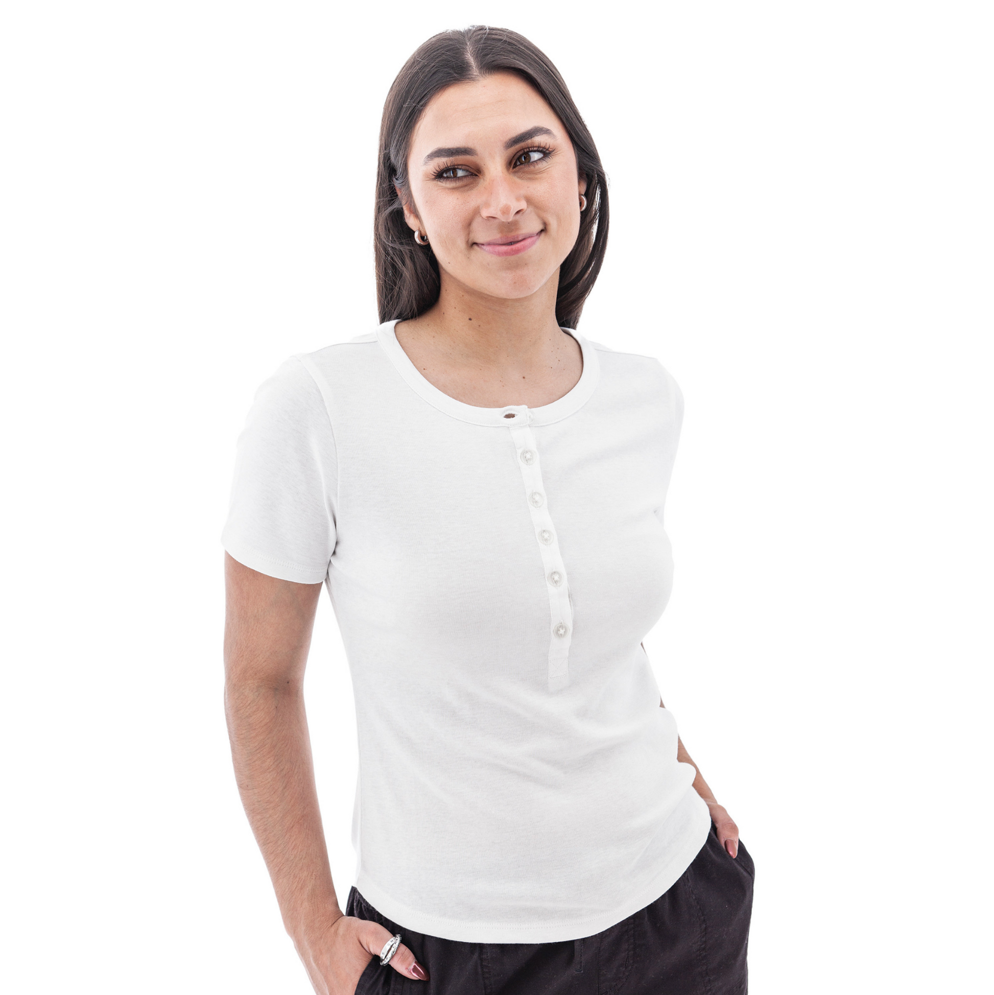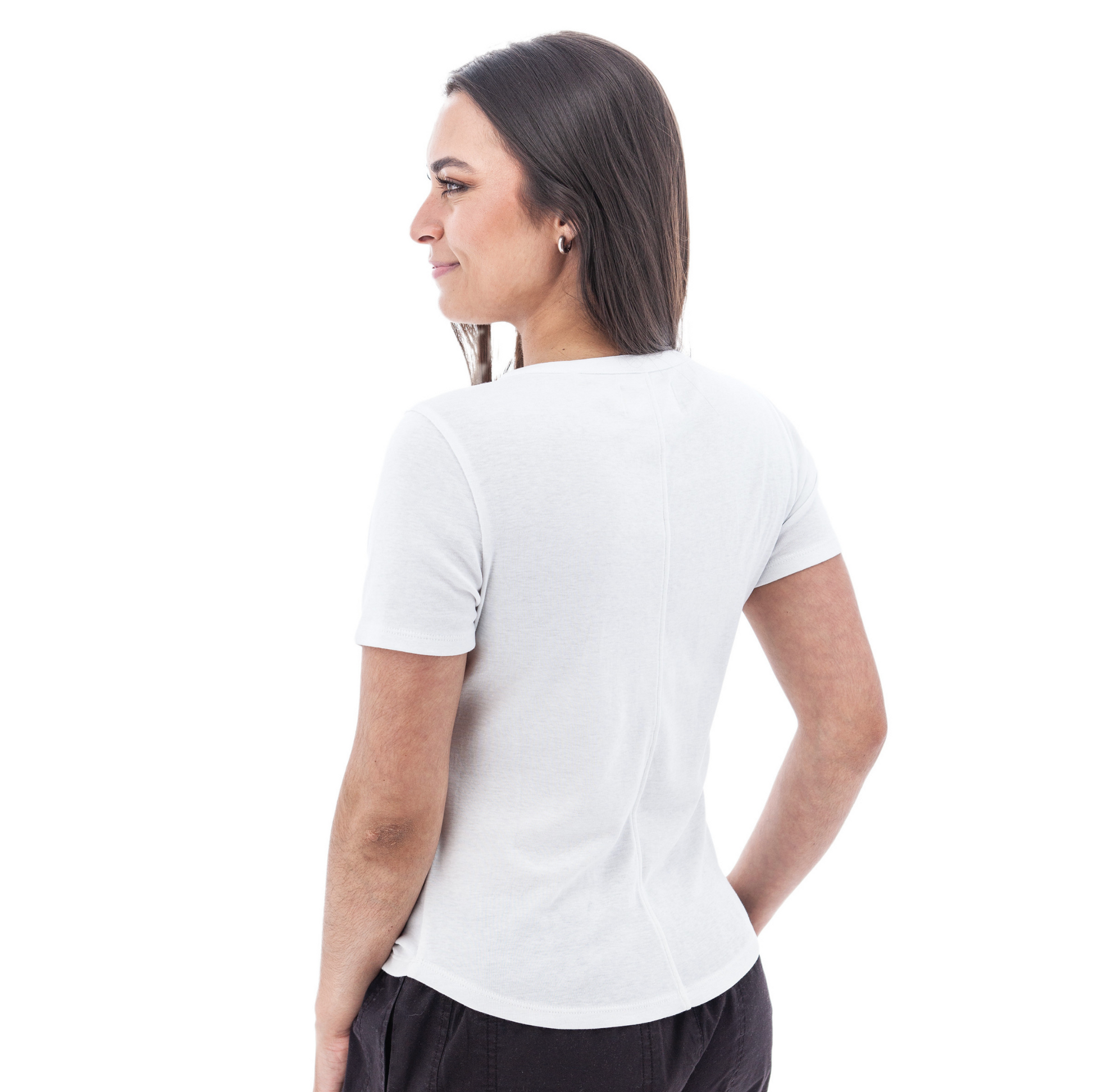The Sandia Henley might look like an ordinary tee, but the luxurious fabric will change your mind. The silky, smooth fabric feels like water running through your hands thanks to a blend of recycled polyester, TENCEL™ Lyocell, and organic cotton. This sustainable trio also lends breathability, lightness, drape, and wrinkle-resistance. It is naturally odor resistant and keeps its shape wash after wash. The top is thoughtfully designed to gently hug the body and hang in all the right places. Pair with shorts or tuck into skirts for casual days or wear with slacks and a light jacket for a nice work outfit. Any way you style this versatile top, the expertly blended fibers will lend luxury to your day.