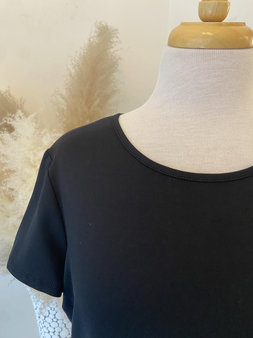 This bamboo jersey tee will be your new favorite t-shirt! Layer under your favorite jacket or cardi for an easy work look or wear with your favorite jeans for a more casual look!