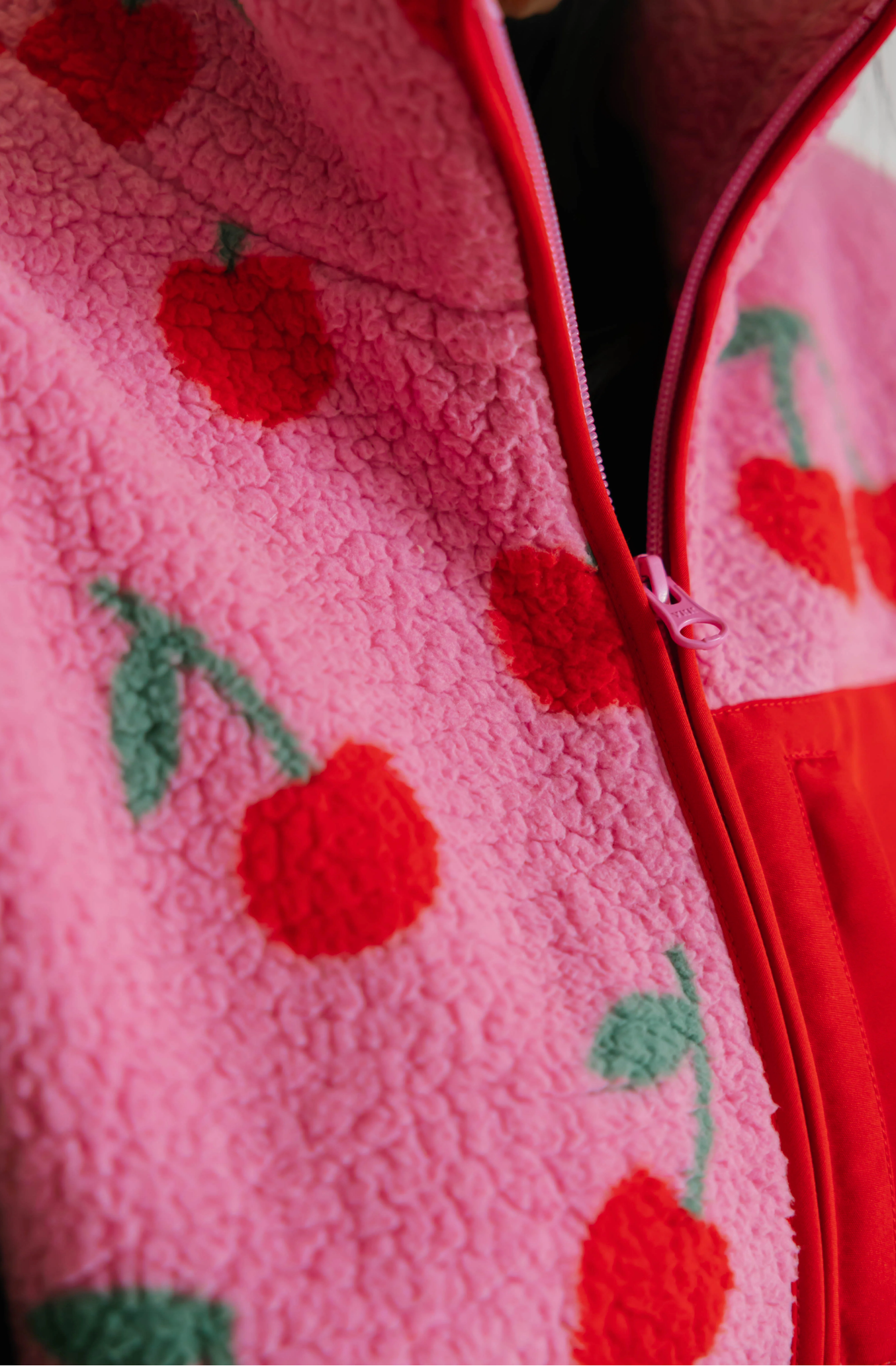 Teddy Zip Up Jacket ~ Pink/Red Cherry