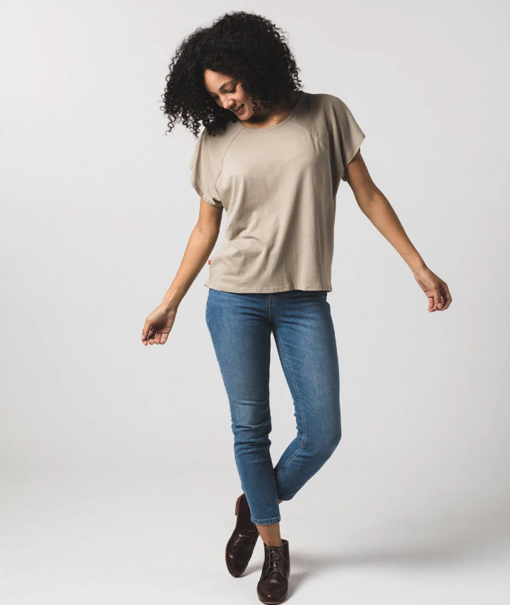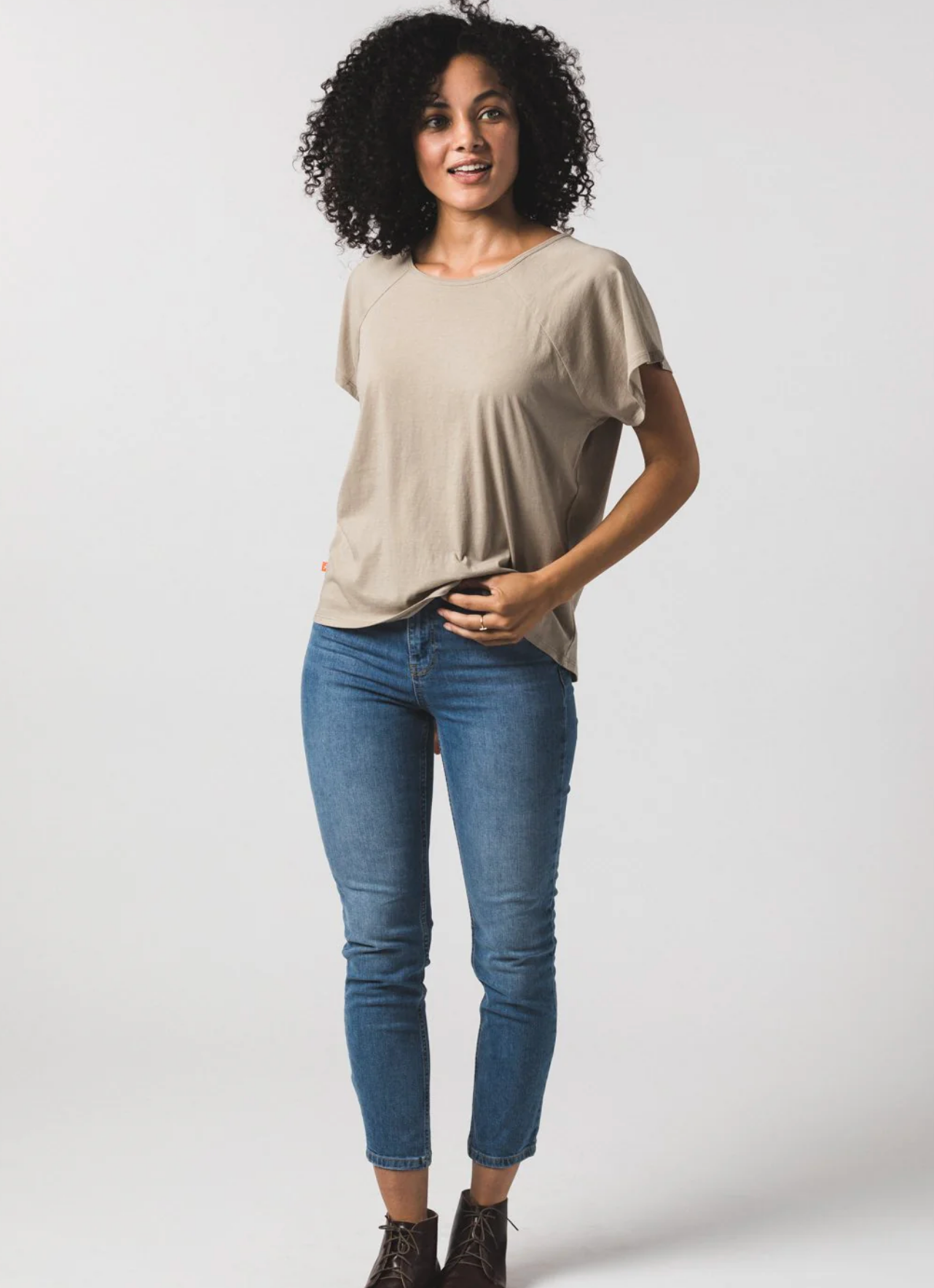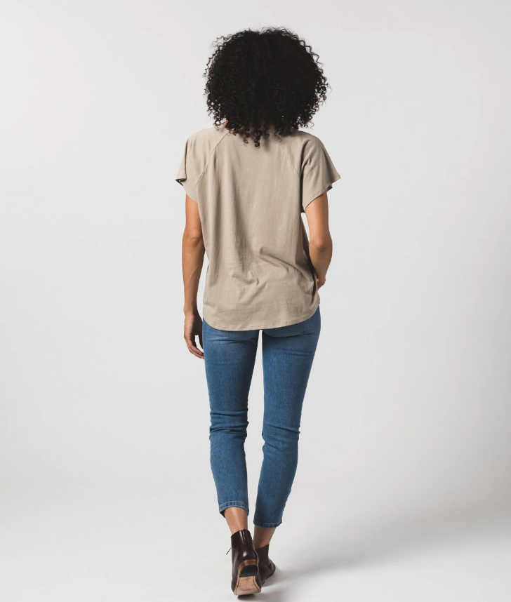 The Raglan Crew features a subtle high-low hem, lightweight flutter sleeves, and a relaxed silhouette perfect for any occasion.