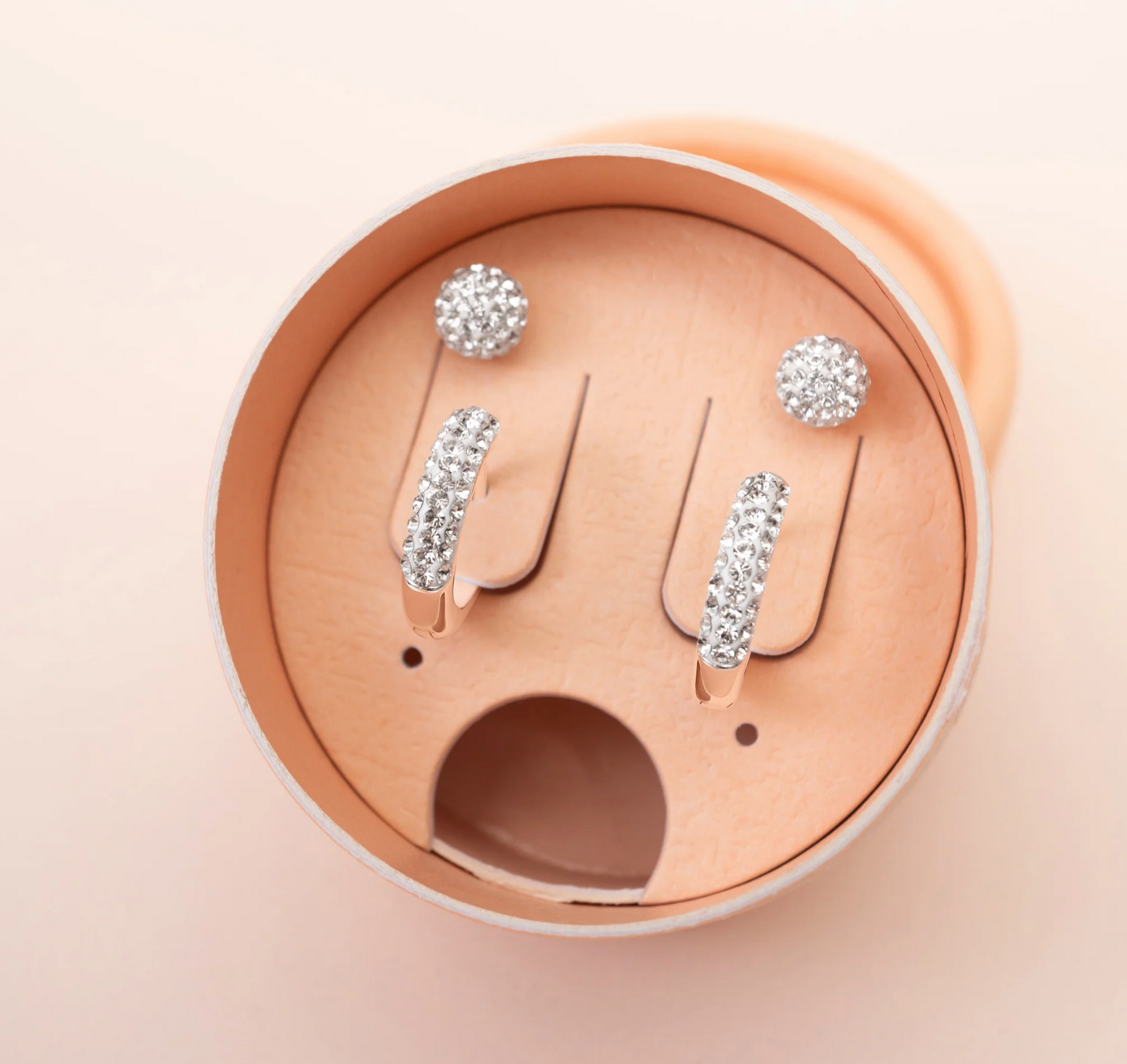 Each piece is crafted in .925 sterling silver and hand-finished with precision-set crystals that catch the light beautifully. Lightweight, versatile, and designed to shine from every angle, this set was made for moments that call for confidence, joy, and a touch of effortless radiance.