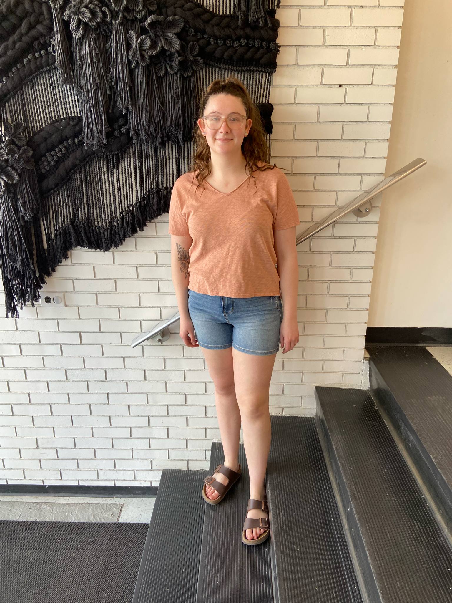 The short sleeve cotton slub tee has a relaxed "boxy fit". Rolled edge details on the neck and a raw seam on the cuff add to the relaxed nature of this super soft tee.