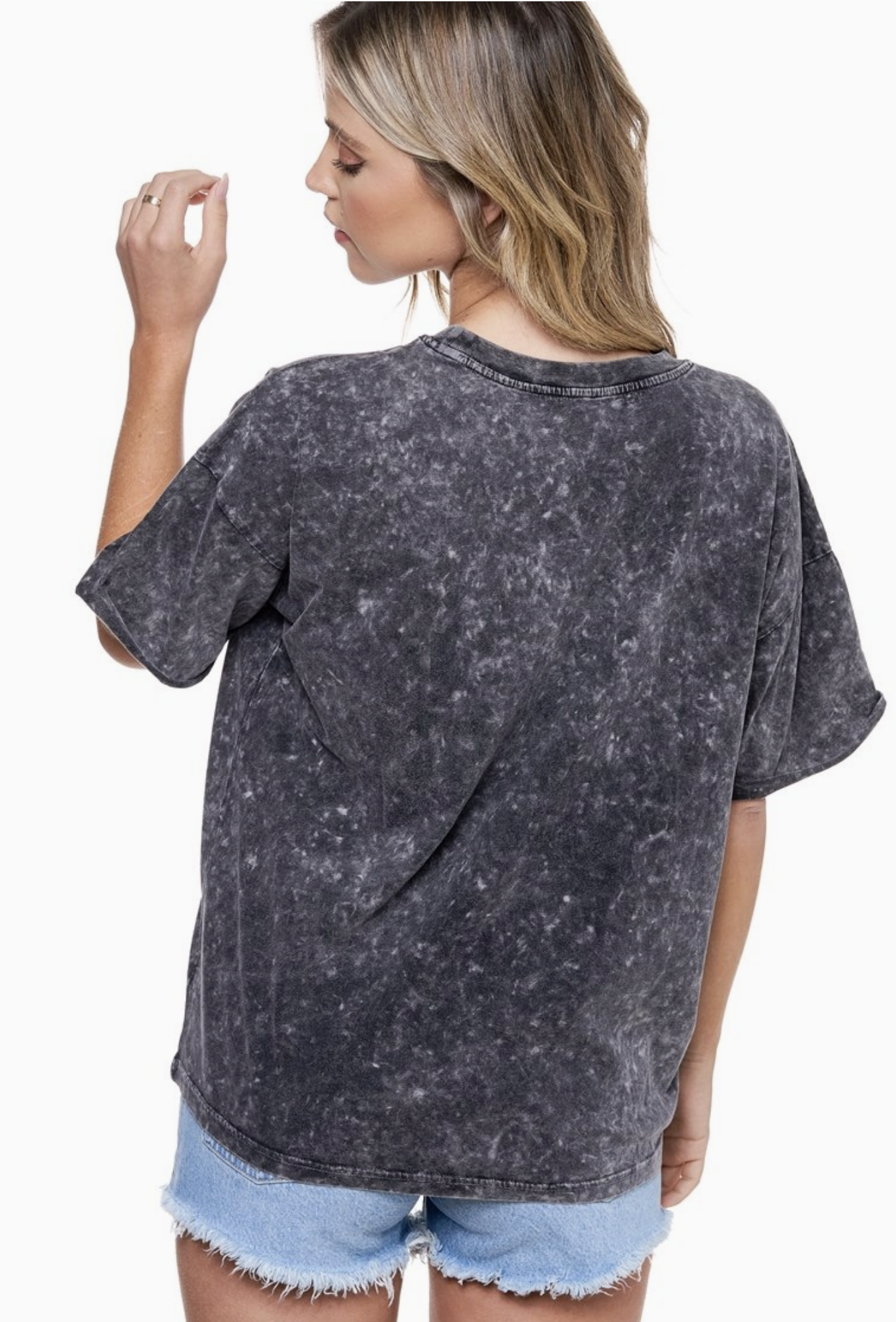 World Tour Rock N Roll Since 1976 Graphic Cotton, Boyfriend Fit, Rolled Cuff, Snow-Dyed Tee.